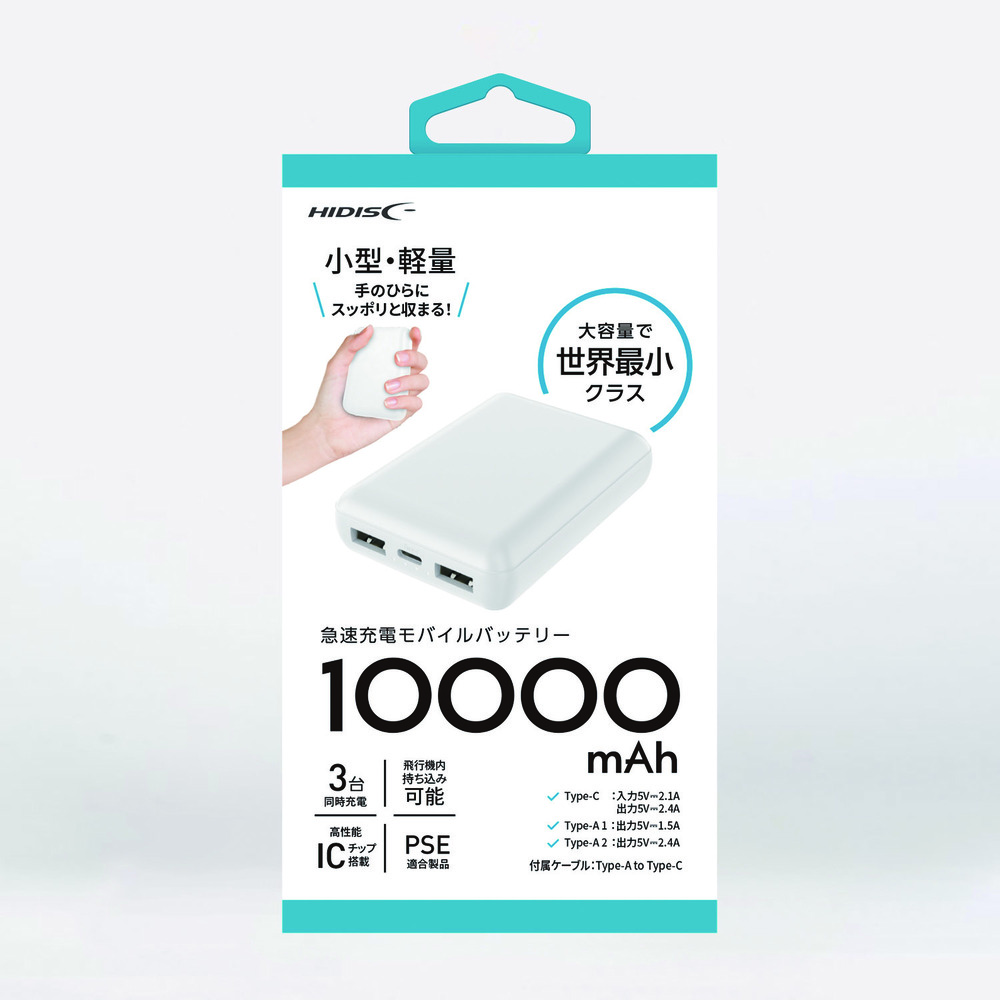 HIDISC 急速充電モバイルバッテリー 10,000mAh 商品番号appliance2274984279863114