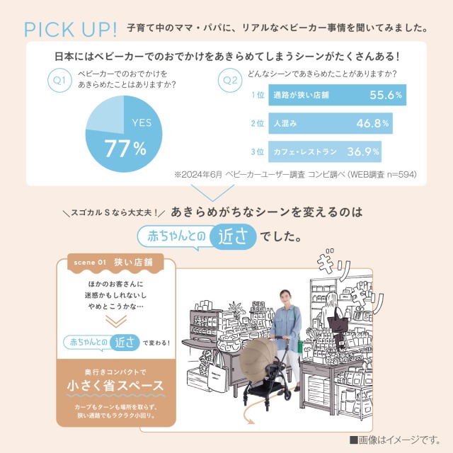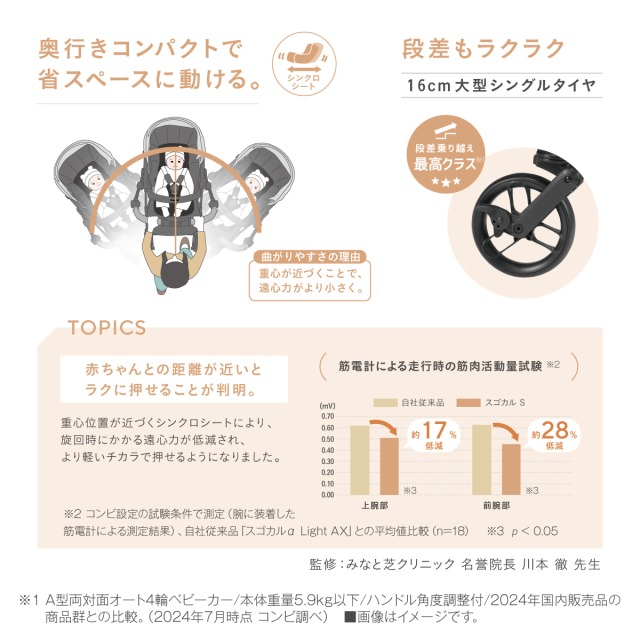 赤ちゃんがグッと近づくシンクロシート搭載で、らくらく走行。