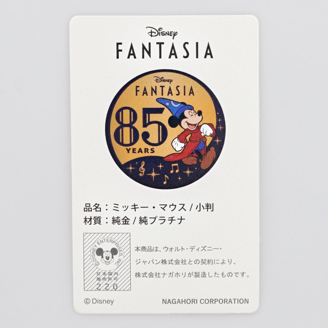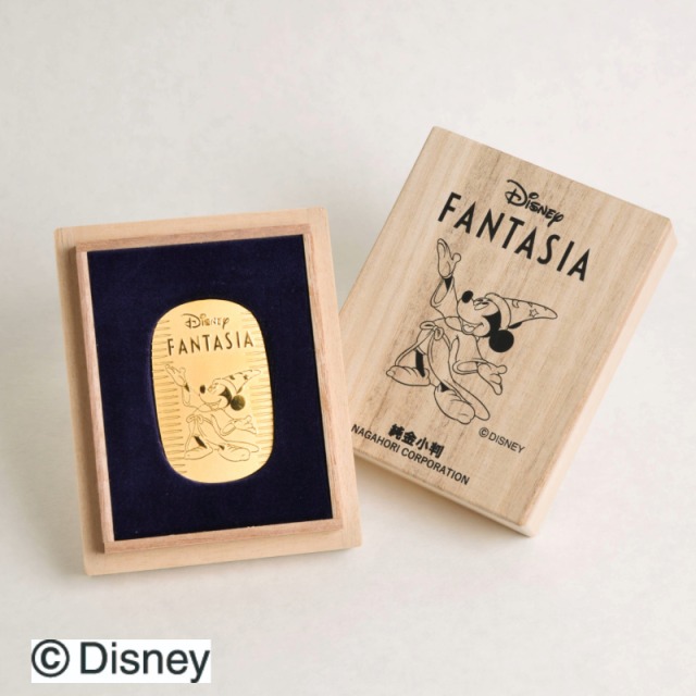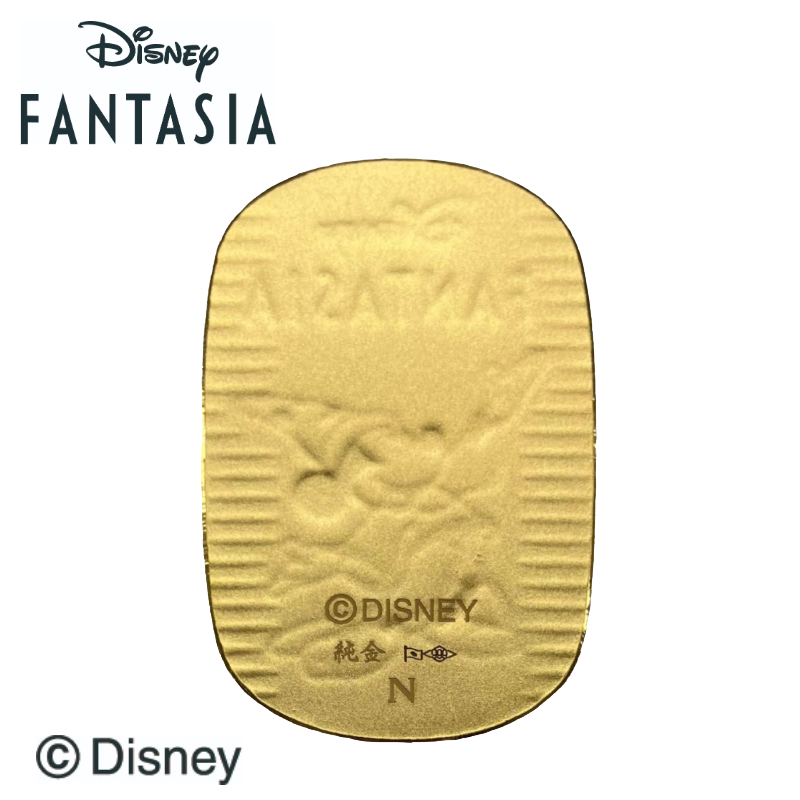 その中の『魔法使いの弟子』からミッキーマウスの楽し気なワンシーンを純金と純プラチナの小判に仕上げました。