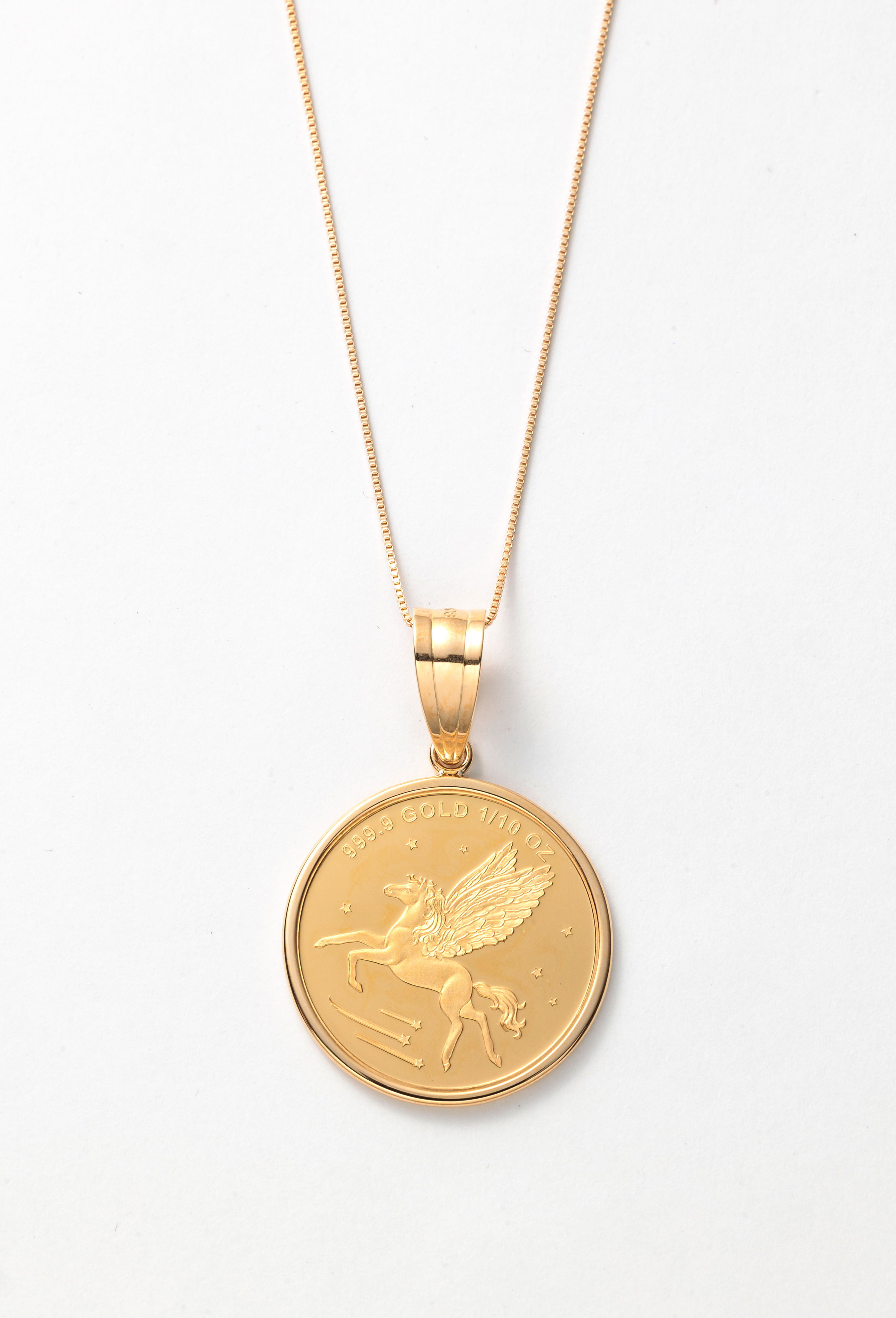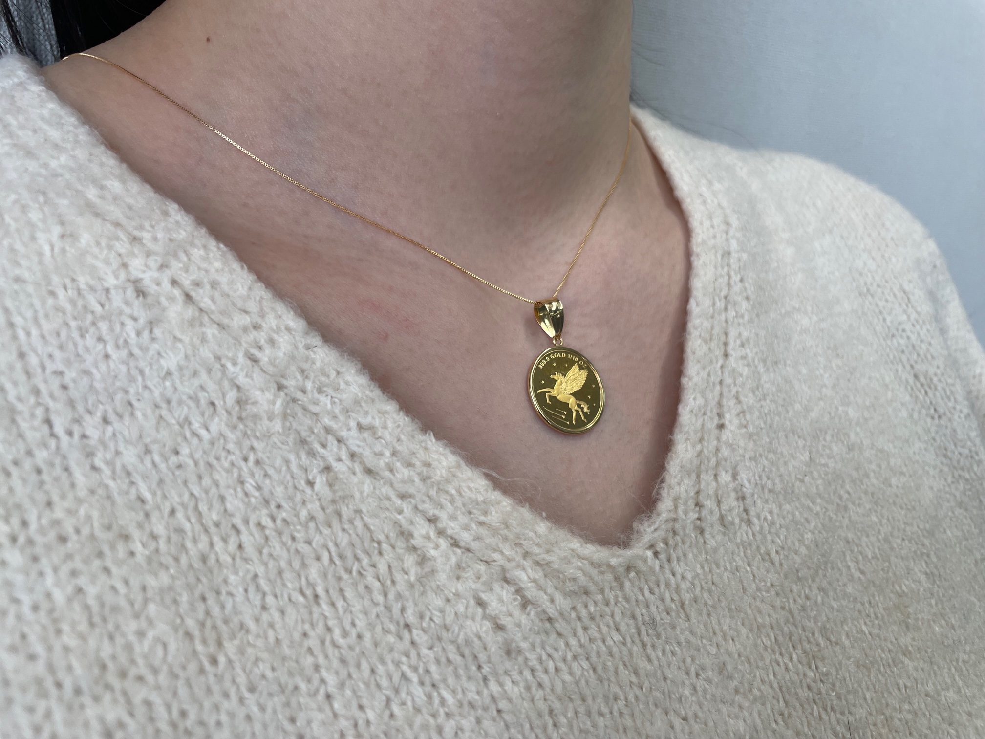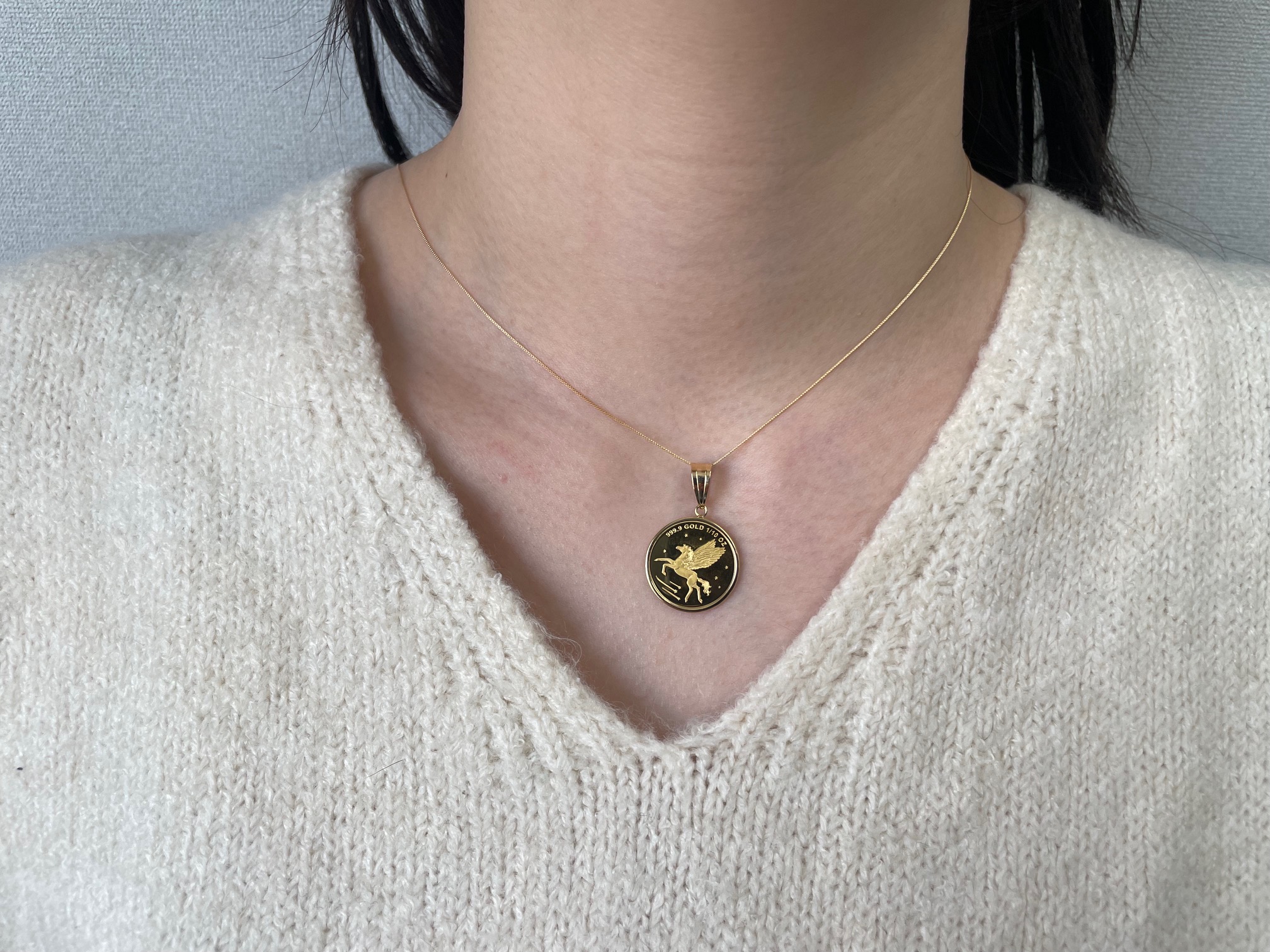 【九州で10点限り】24金 チャールズ国王ペガサス 1/10オンスコイン・18金 チェーン枠ネックレス【12/7(日)以降のお渡し】 商品番号bigbazaar1352313568886015