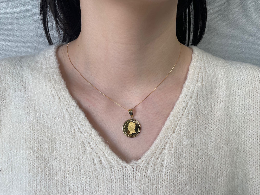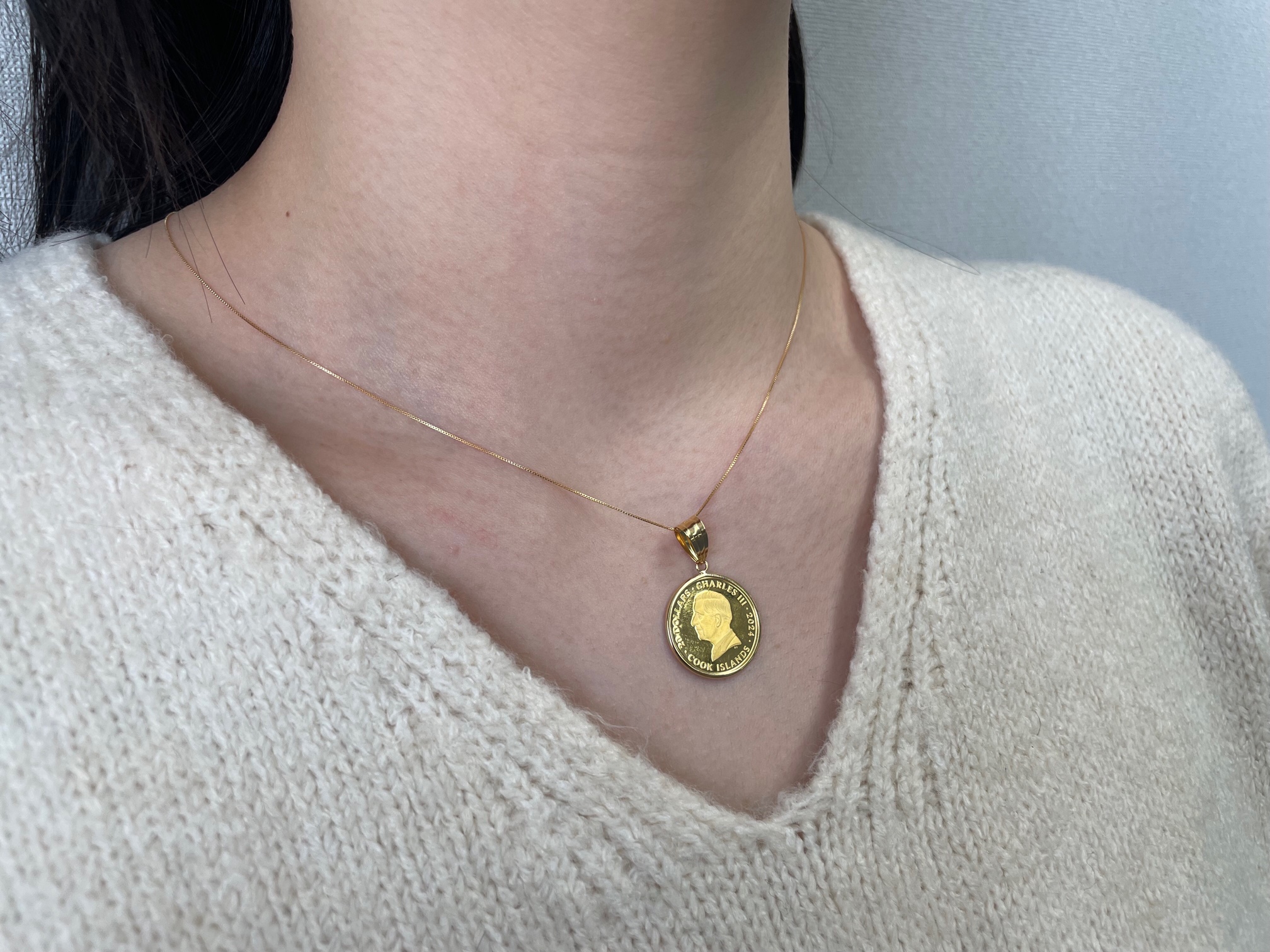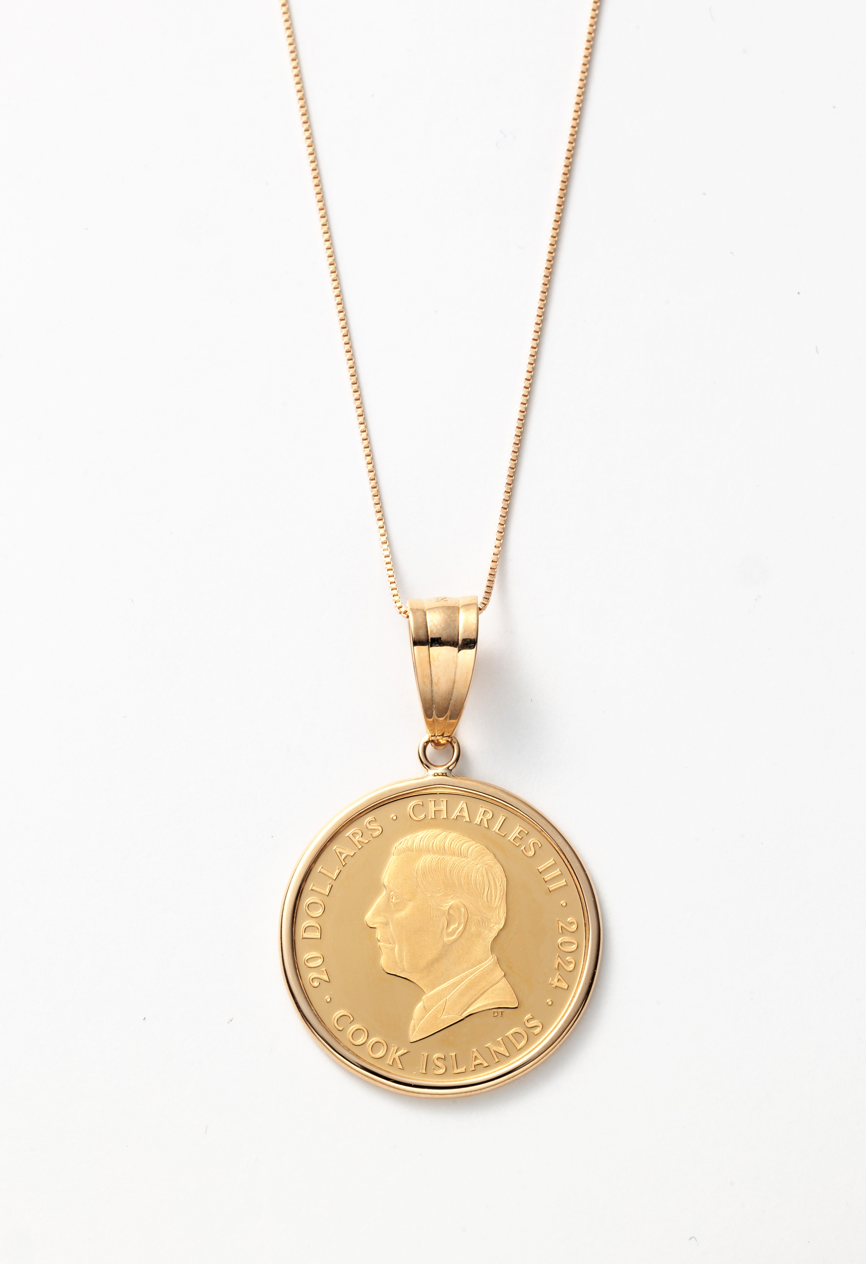 【九州で10点限り】24金 チャールズ国王ペガサス 1/10オンスコイン・18金 チェーン枠ネックレス【12/7(日)以降のお渡し】 商品番号bigbazaar1352313568886015