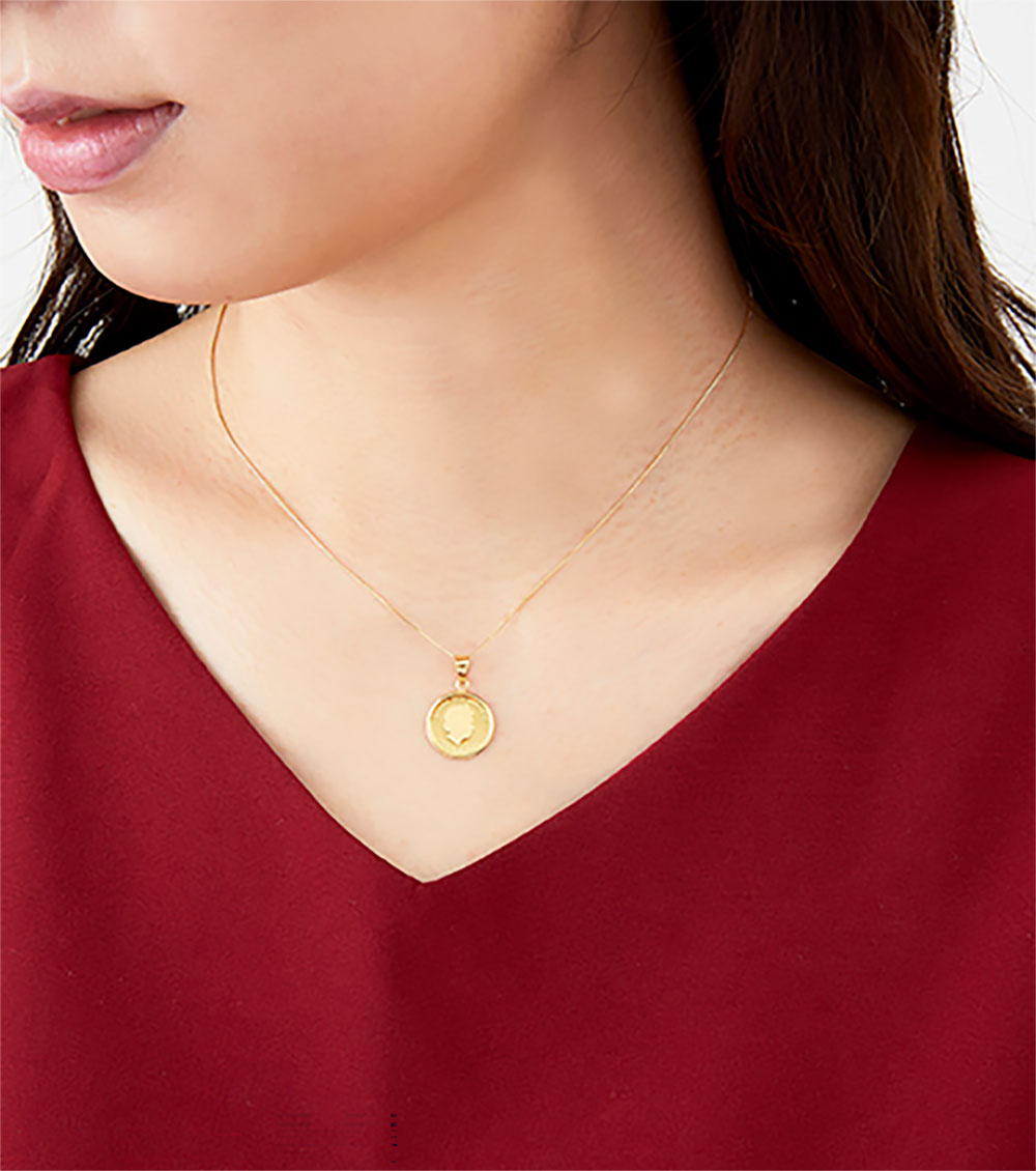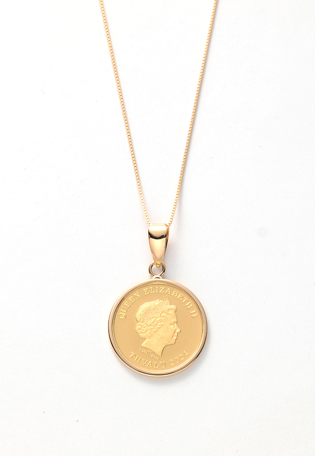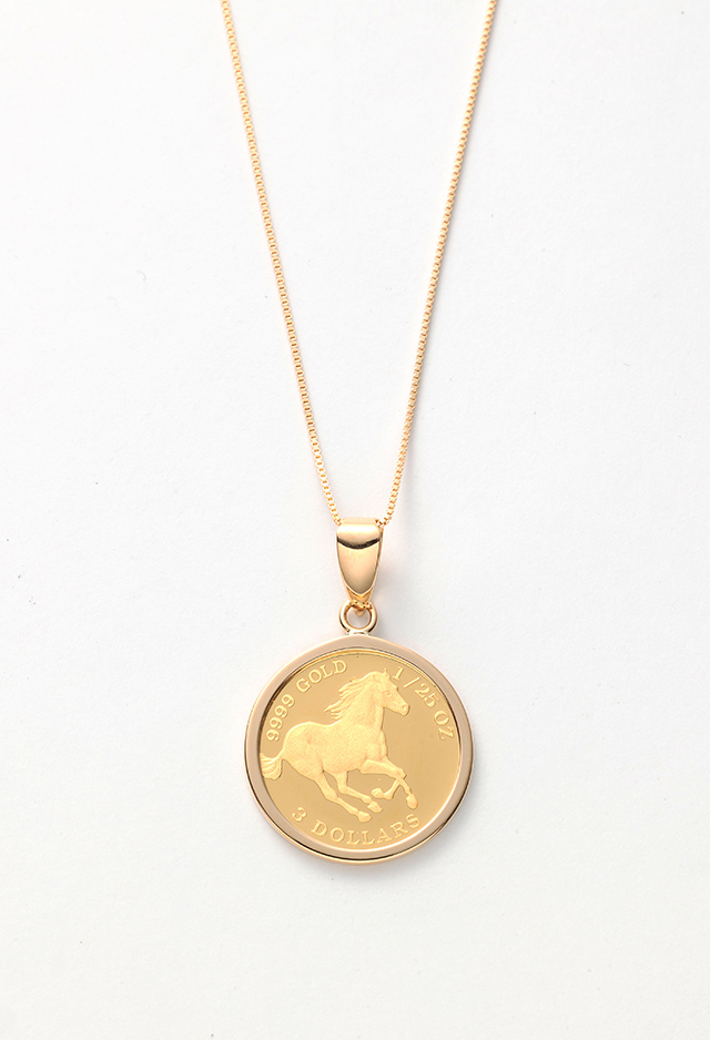 【九州で10点限り】24金(純金)エリザベス女王ホースデザイン・18金枠 1/25オンスコインネックレス【12/7(日)以降のお渡し】 商品番号bigbazaar1352313568913018