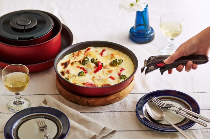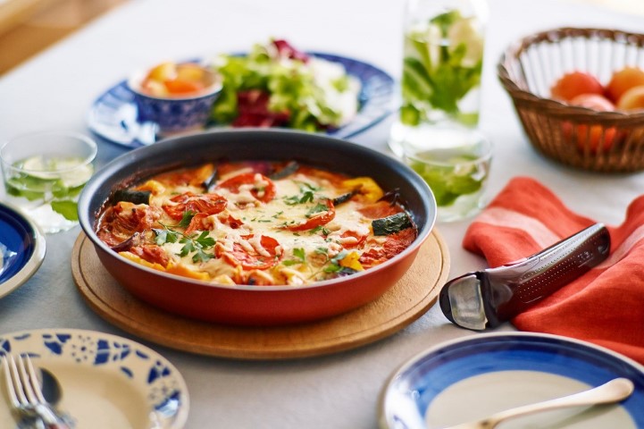 取っ手を外してそのままオーブン調理。出来たてをそのままテーブルヘ。
