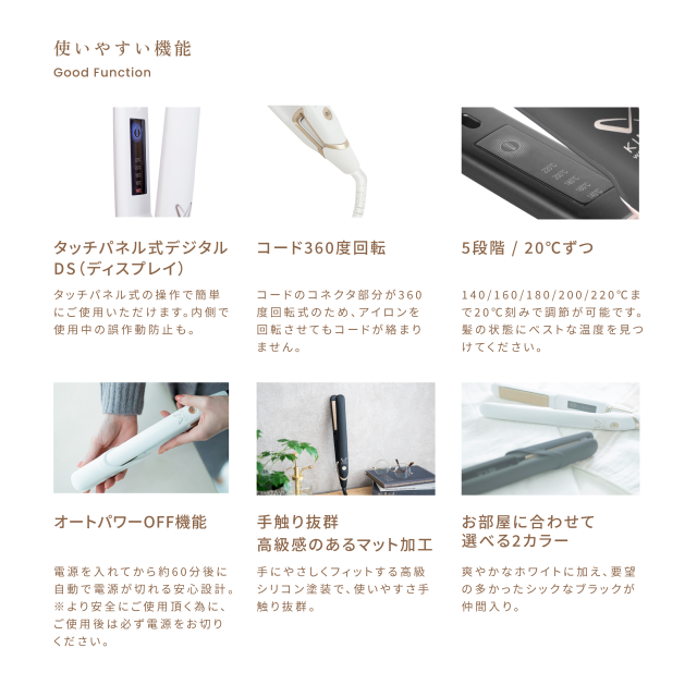 最高温度220℃で夕方まで崩れないツヤ髪がつくれます。