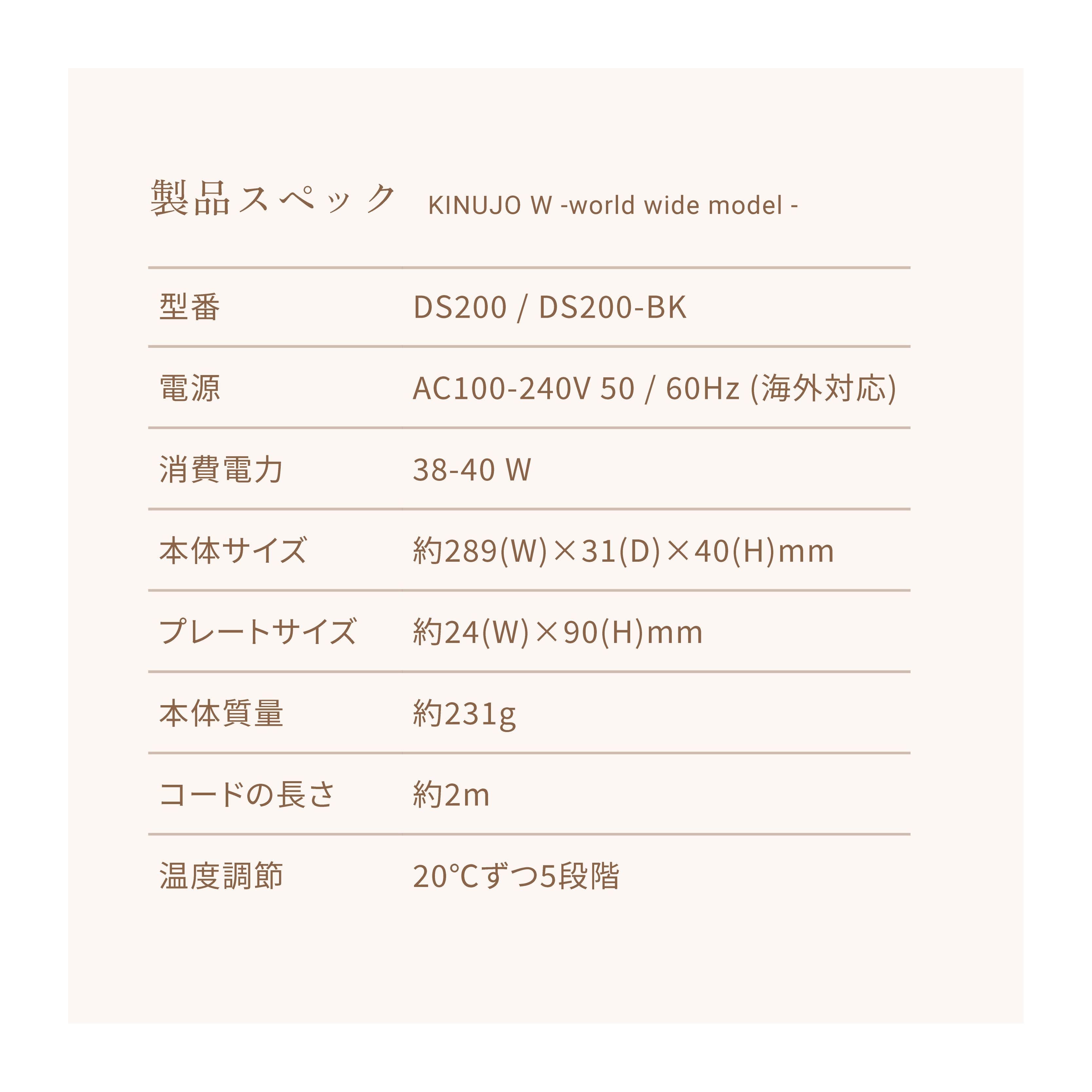 AC100~240Vの海外対応!海外でもKINUJOシリーズが使用できます。