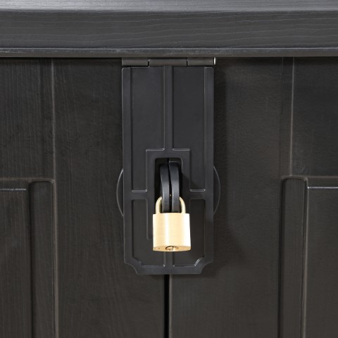 南京錠をなどでロックが可能なパーツが前面についています。頑丈な金属製で、屋外での使用も安心です。