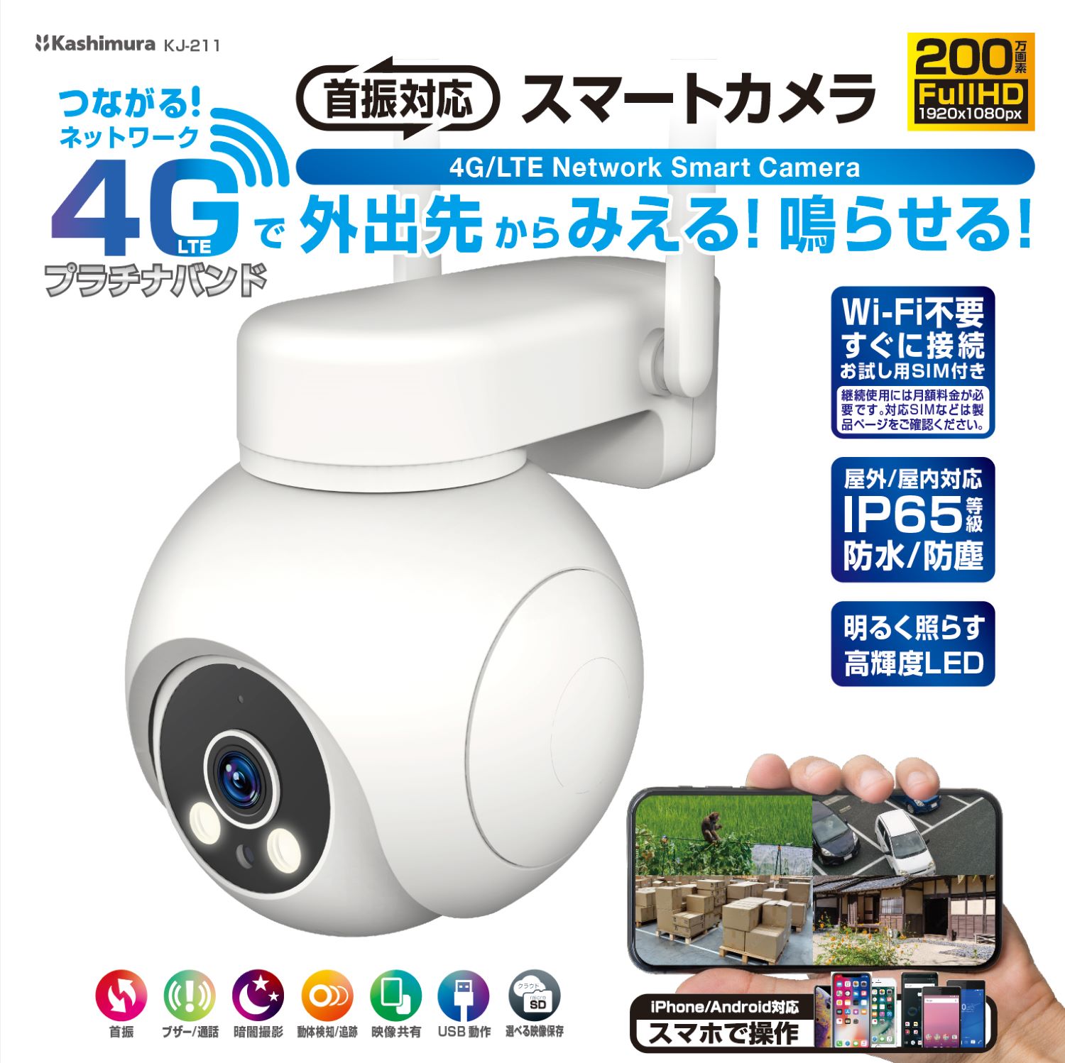 ●4G/LTE ネットワークで外出先やご自宅、世界中のどこからでもスマホで映像を確認できる、首振タイプの防水対応スマートカメラ。