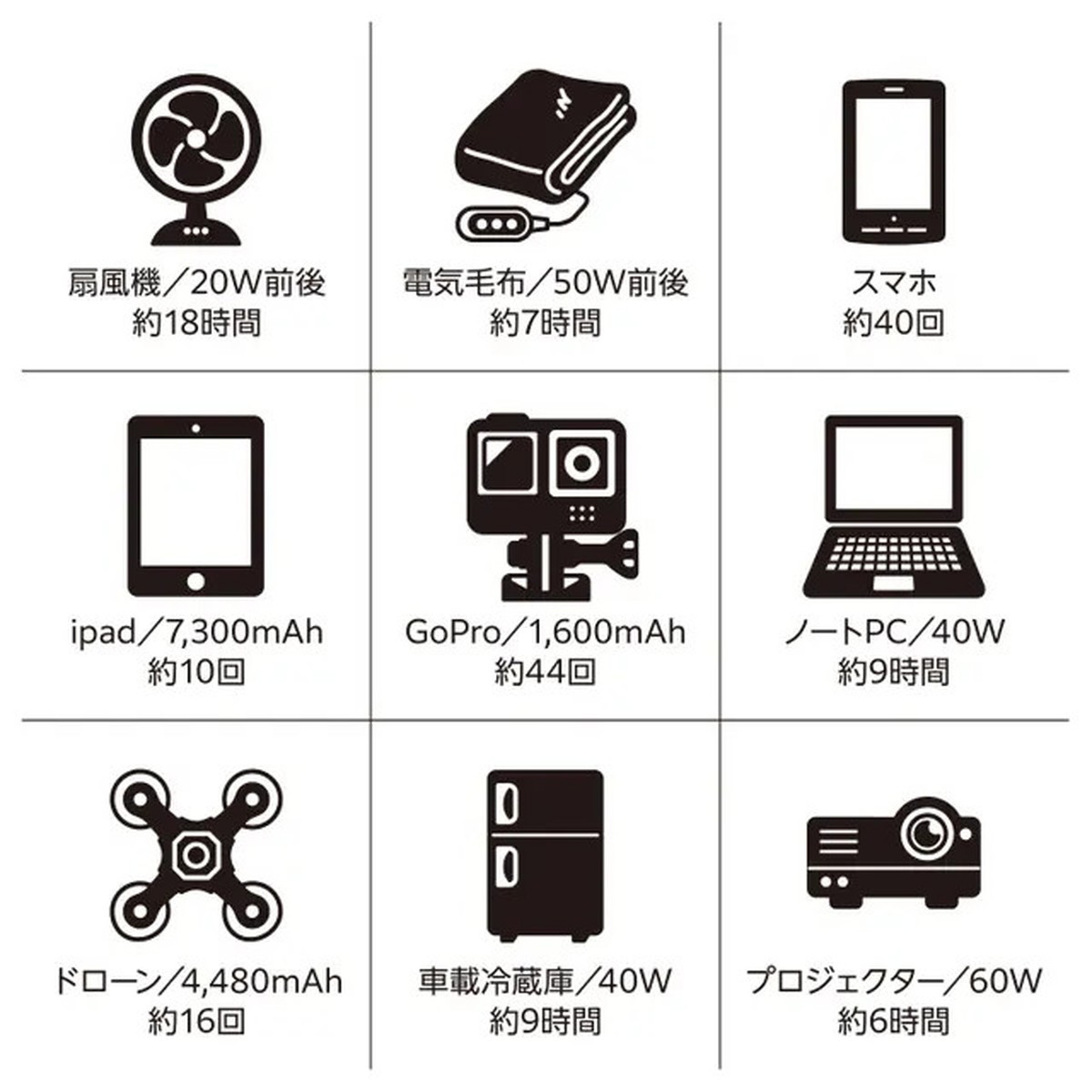 バッテリー容量:140,000mAh(518Wh)※リチウムイオンバッテリー