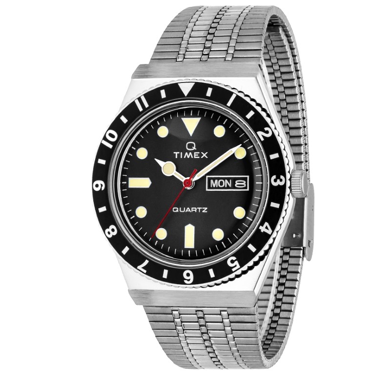 アルマイト加工の回転式ベゼルや、コインで電池交換が可能なハッチ・ケースバック、織り込みのステンレススチールブレスレット、文字盤に配された“Q”ロゴなど、当時のディテールを再現しています。