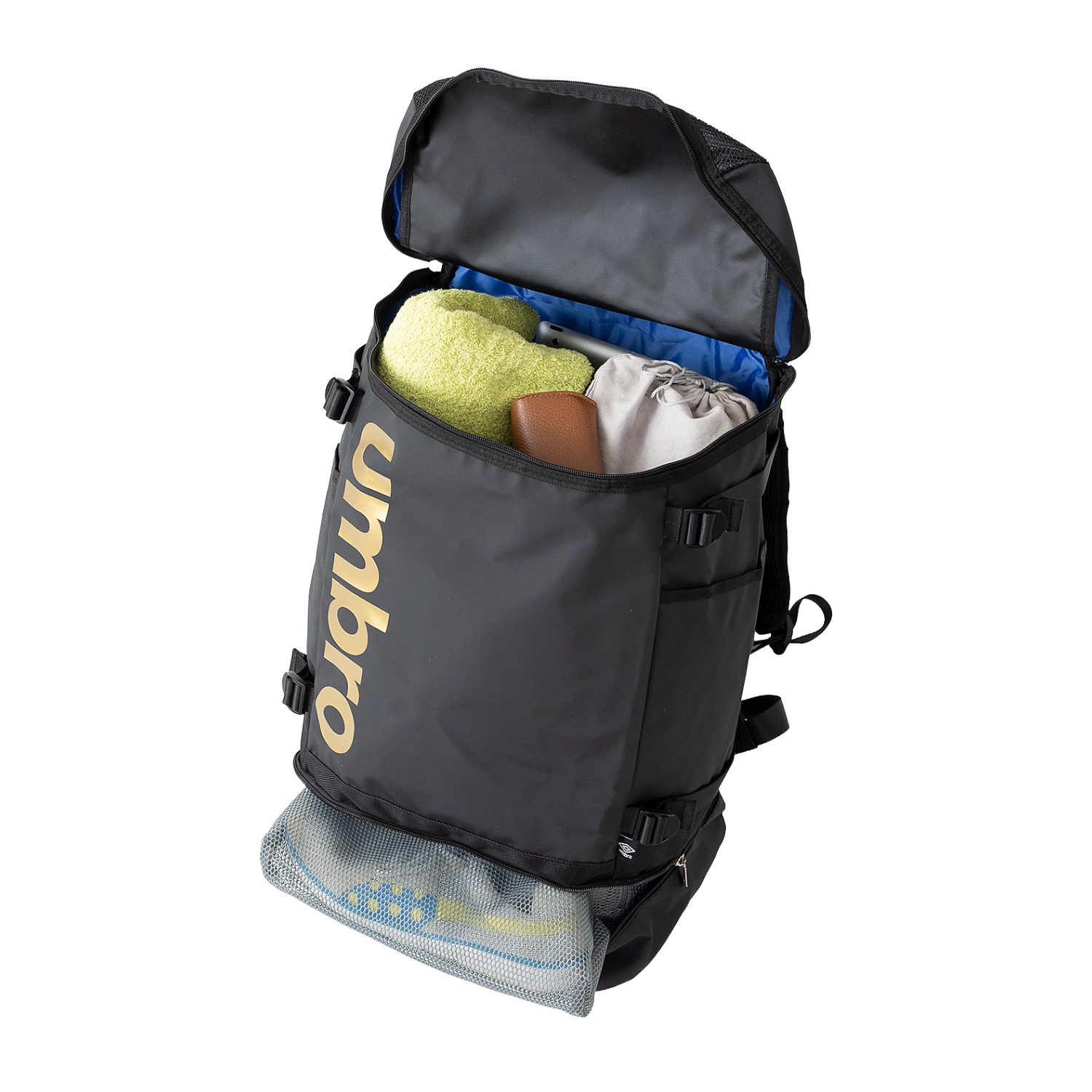 シューズポケットとしても使用でき、スポーツシーンにも便利。