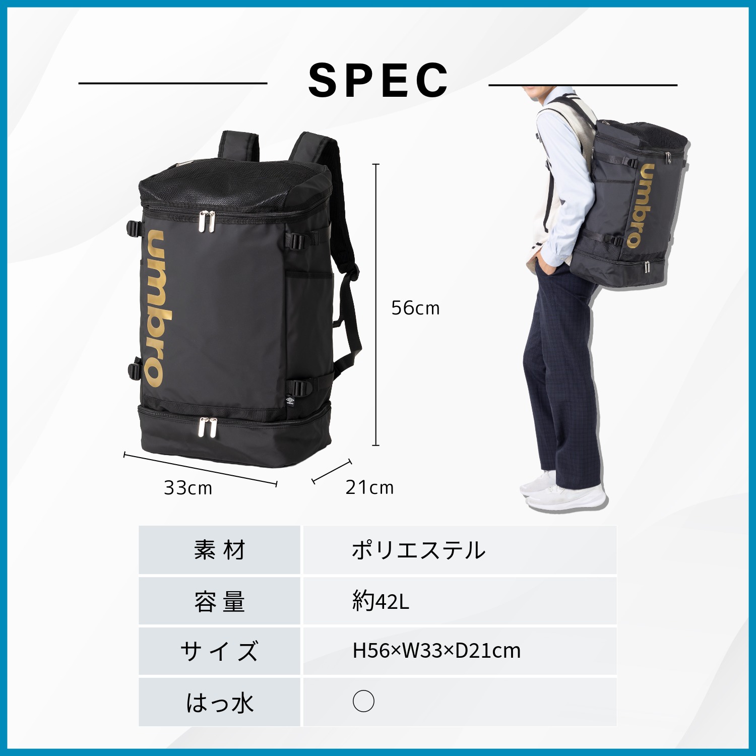 大容量のスクエア型フォルムで、通学・部活・普段使いまで幅広く対応。