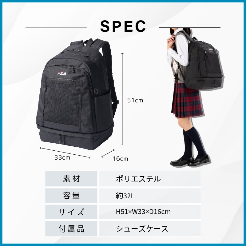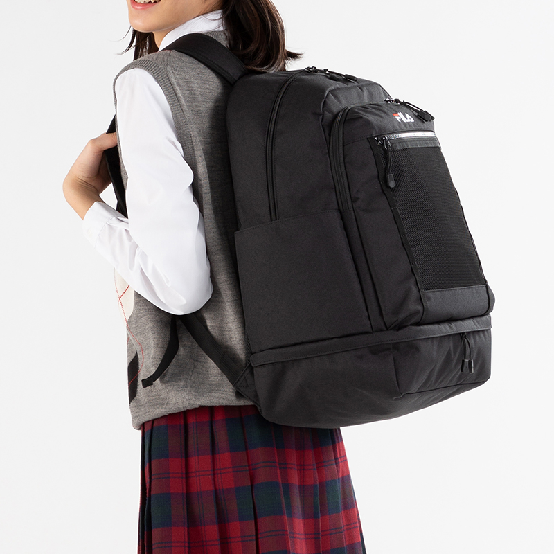 FILA フィラ シューズケース付き2層式リュック ブラック(レッドロゴ) 商品番号carrycase1362313675378038