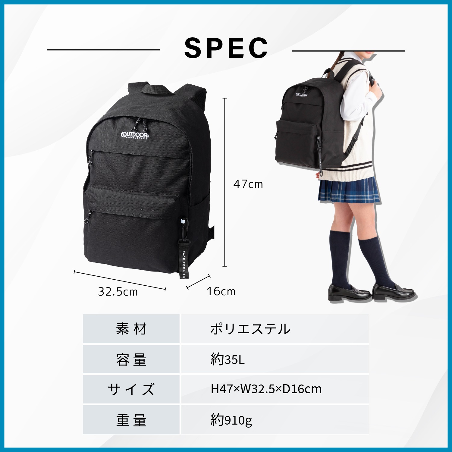 通学や通勤、スポーツにも最適な大容量35Lの収納力。