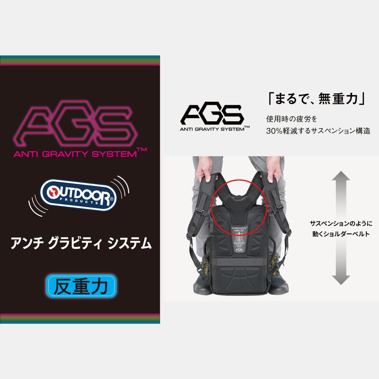 首・肩・背中・腰への負担を軽減するサスペンション構造「AGS」(Anti Gravity System アンチグラビティシステム)搭載。