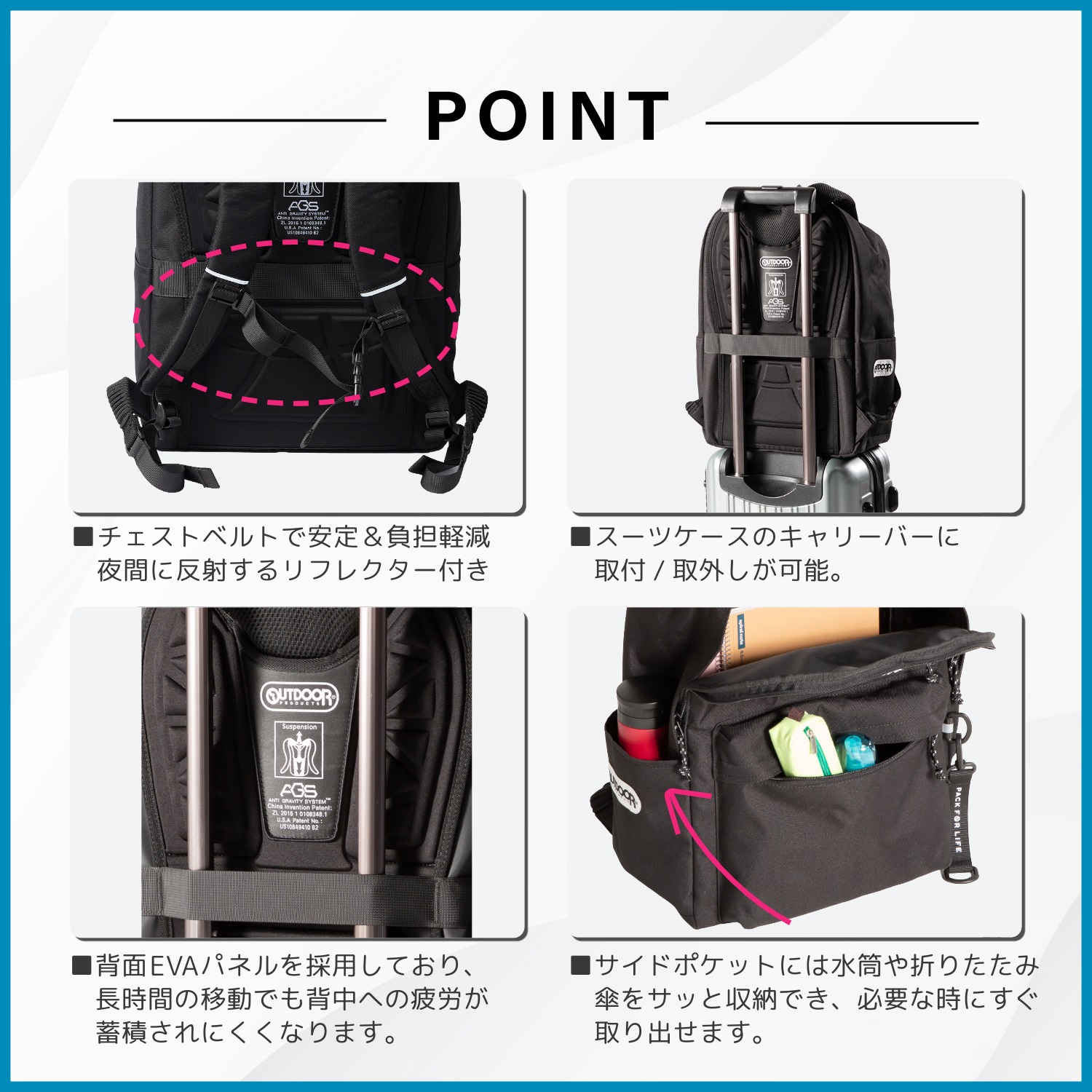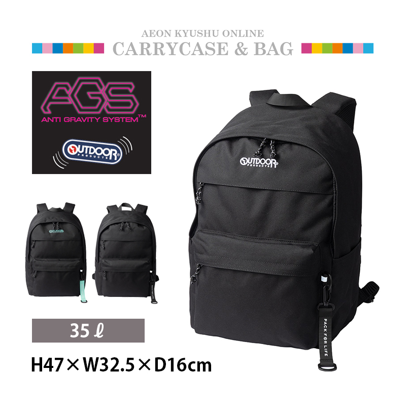 OUTDOOR PRODUCTS(アウトドアプロダクツ) AGS ラウンドデイパック 大容量 リュック ブラック(ホワイトロゴ) 商品番号carrycase1362313675575017