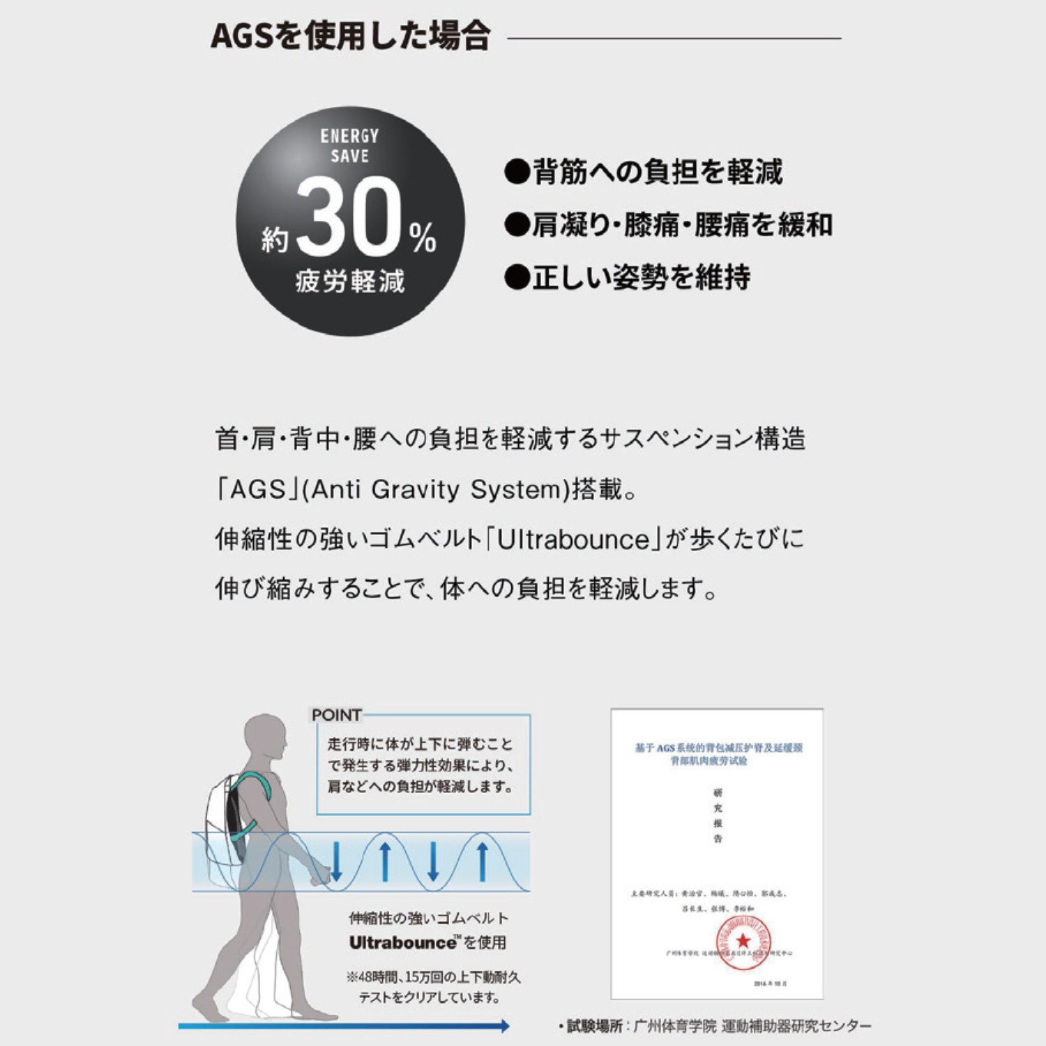 大容量なのに驚きの軽量感!AGS搭載バックパック