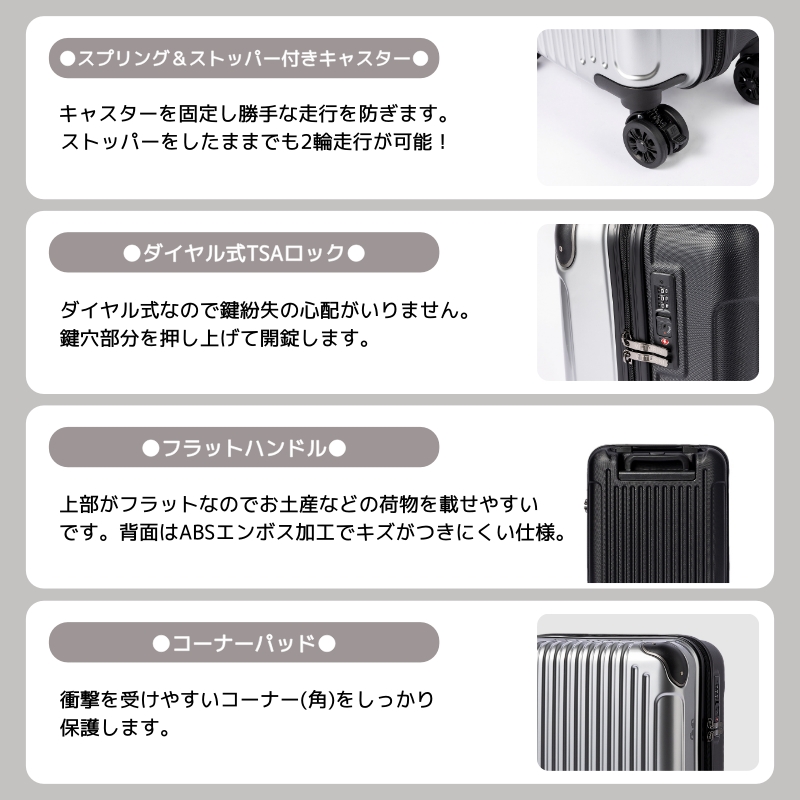 耐久性&キズに強いツートンカラー仕上げのキャリーケース