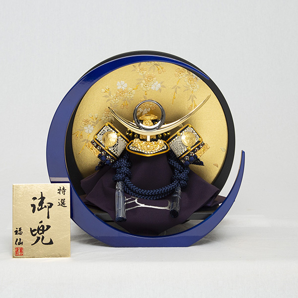 月を模した飾り台が特徴の兜飾りです。