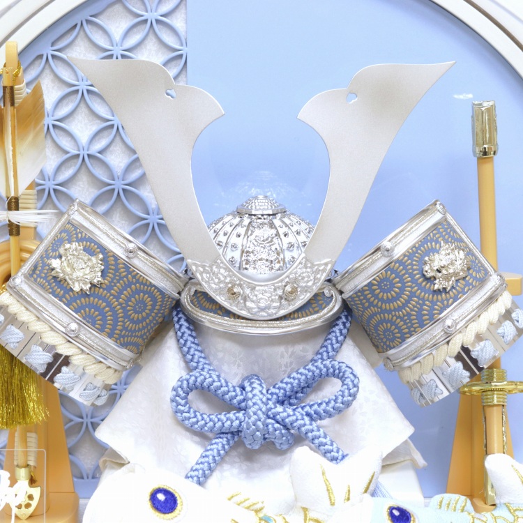 兜は水色を基調としたシルバー鍬形兜です。