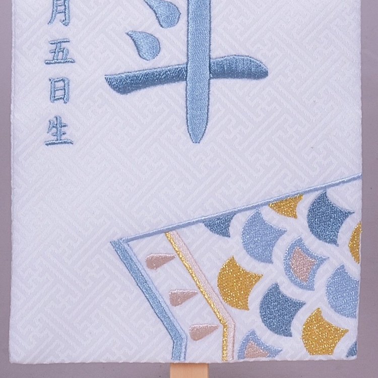 ジャガード織りの生地を使用した鯉のぼり柄の名前旗です。