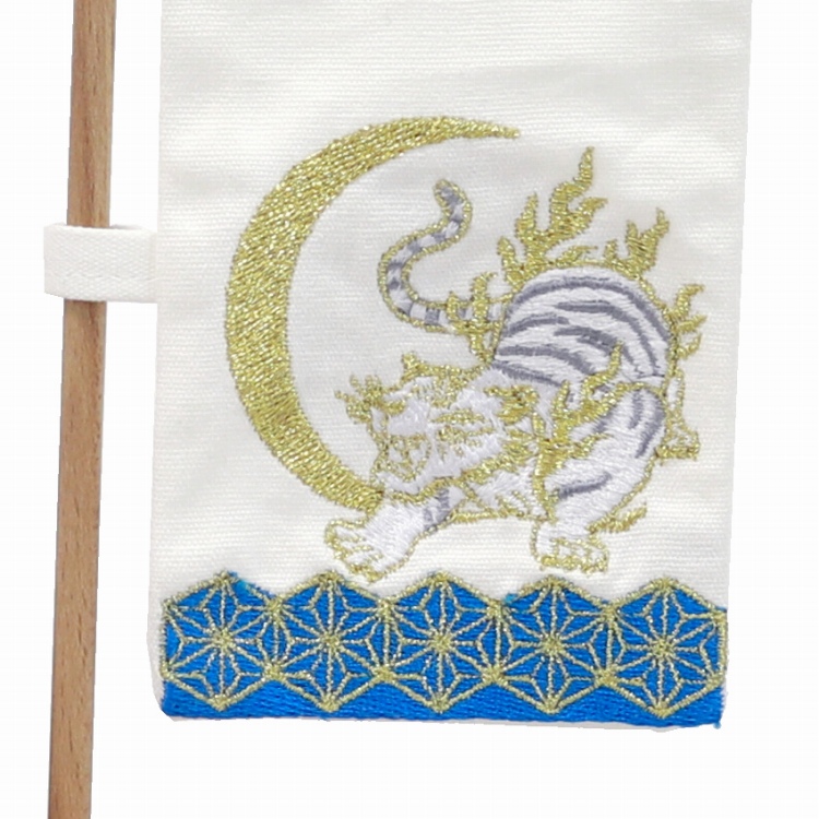 のぼり旗には龍虎の刺繍が施され、お子様のお名前が入ります。