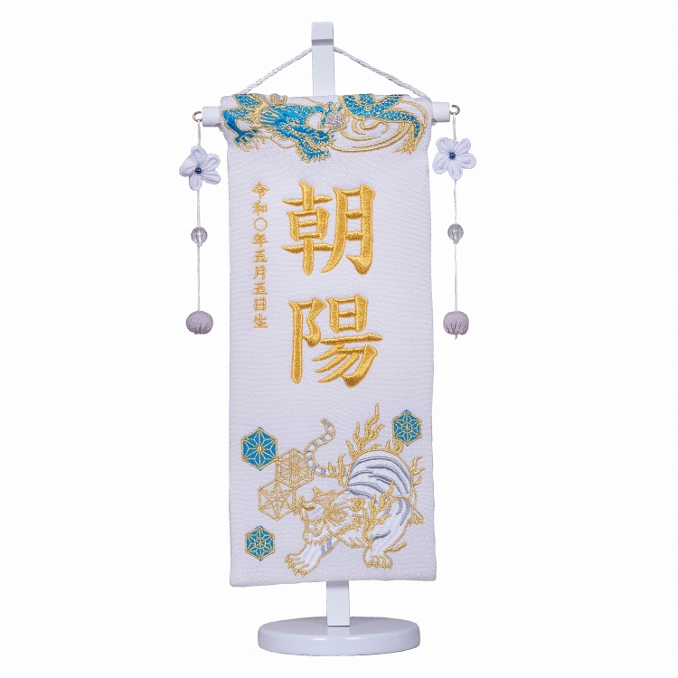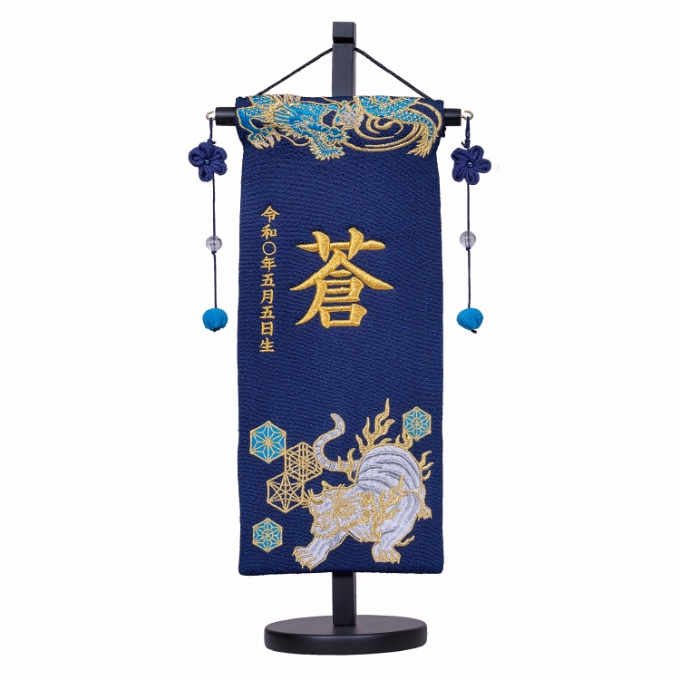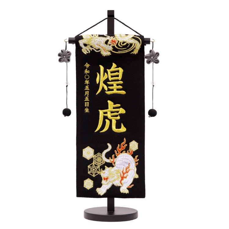 寿慶 刺繍名前旗 小 瑠璃の 龍虎 紺・白・黒 商品番号fd3574944358078617