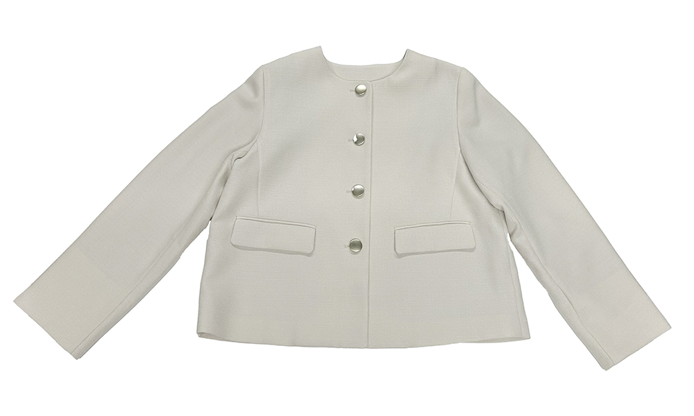 上品な凹凸感が魅力のブッチャー素材を使用した、きちんと感と軽やかさを両立したノーカラージャケット。