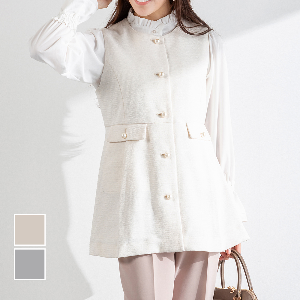 ツイードペプラムジレ ホワイト M 商品番号formal1072310774390015