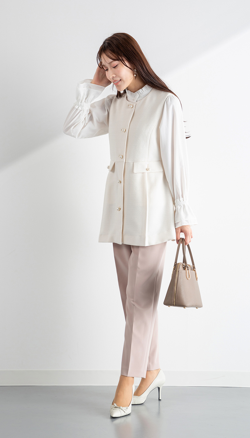 きちんと感もありながら着回し力抜群のツイードジレ。