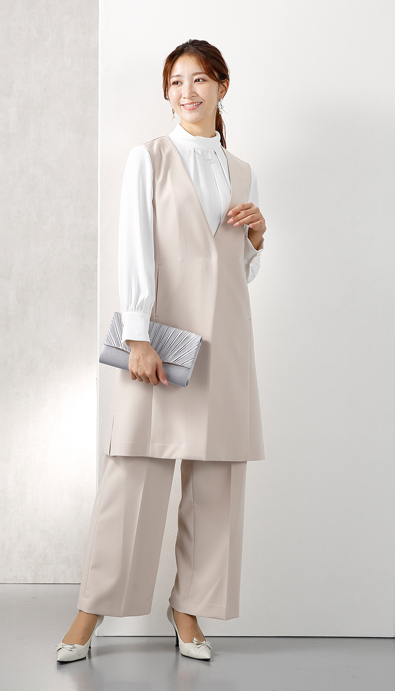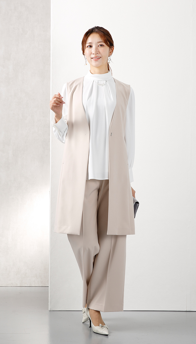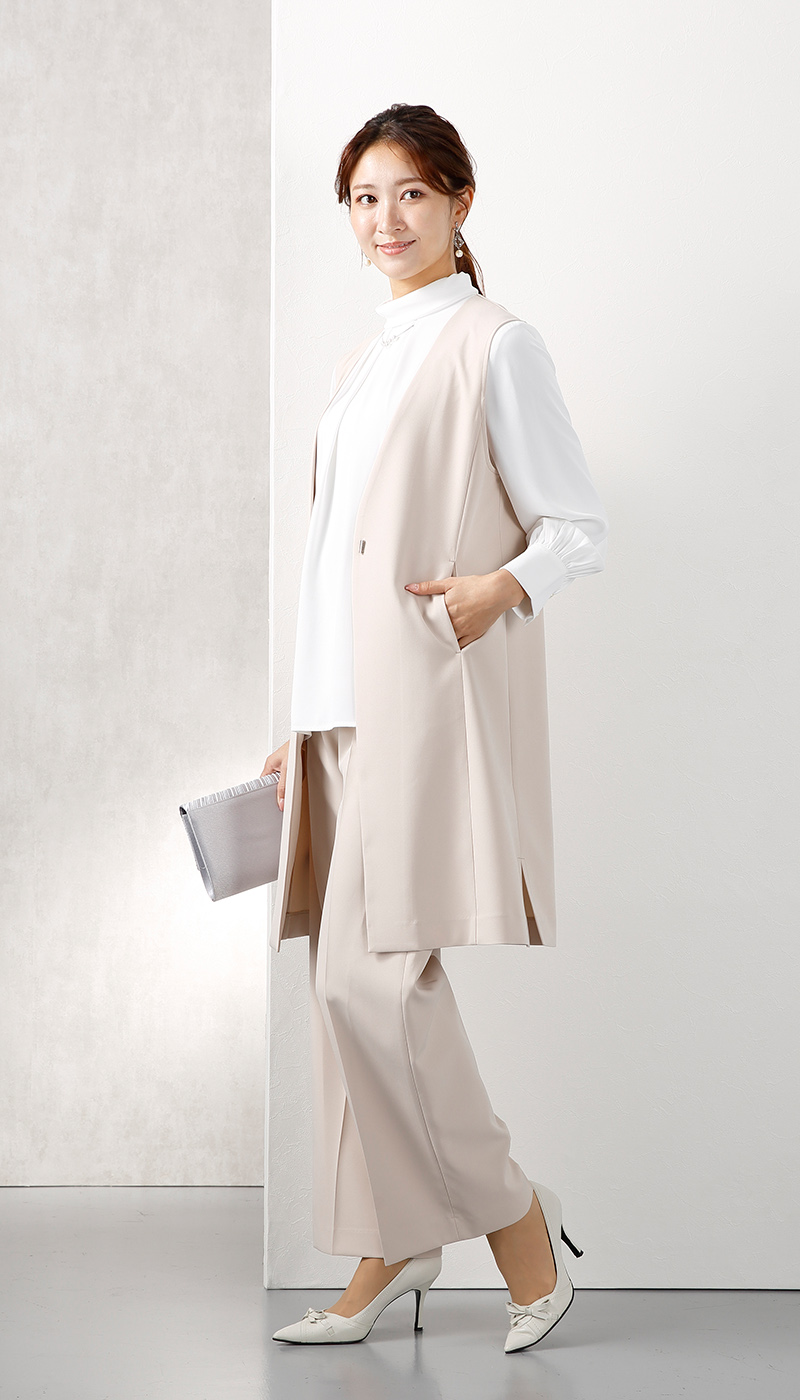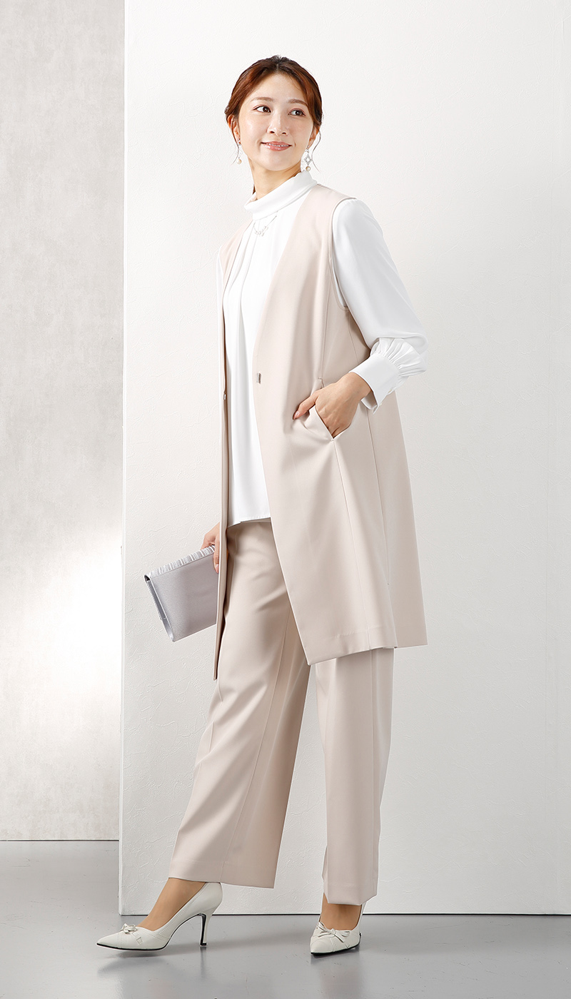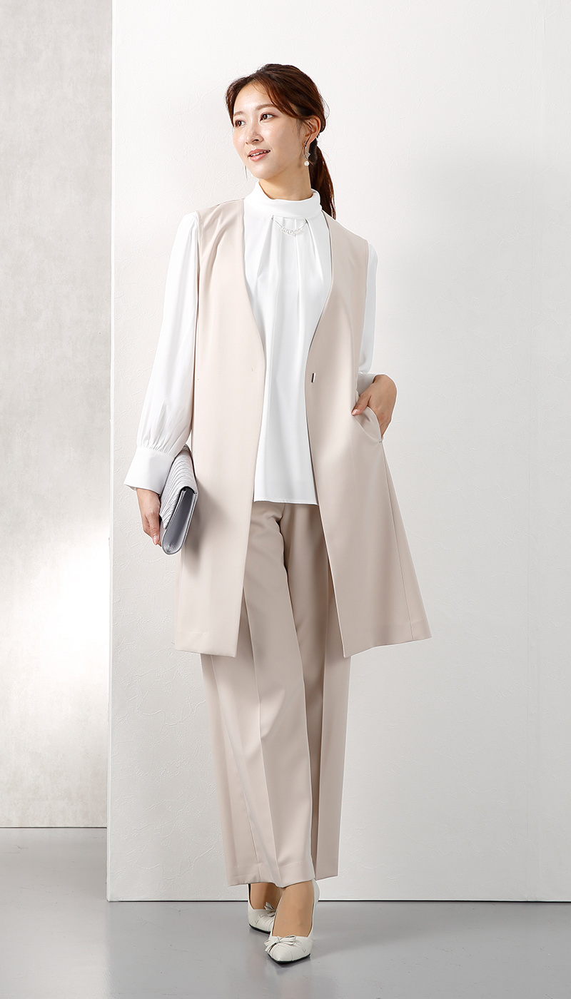 ハレの日だけじゃない、スタイルアップ効果抜群のロングジレセットスーツ。
