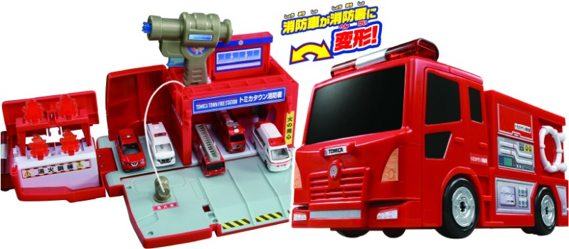 遊ばないときは消防車にパーツやトミカを収納しておかたづけできます。