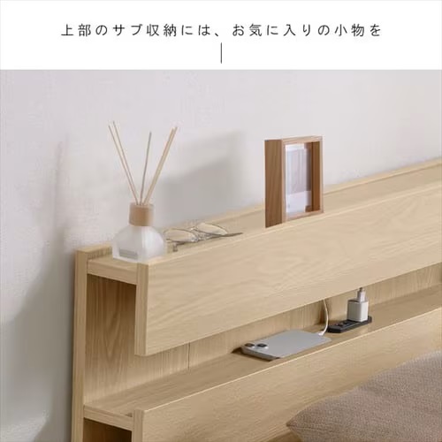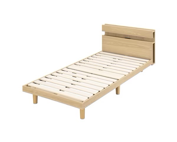 アイリスオーヤマ すのこベッド コンセント2口付き ヘッドボード2段収納 ナチュラル シングル【10日~2週間後のお渡し】 商品番号homecoordy2024967576680233