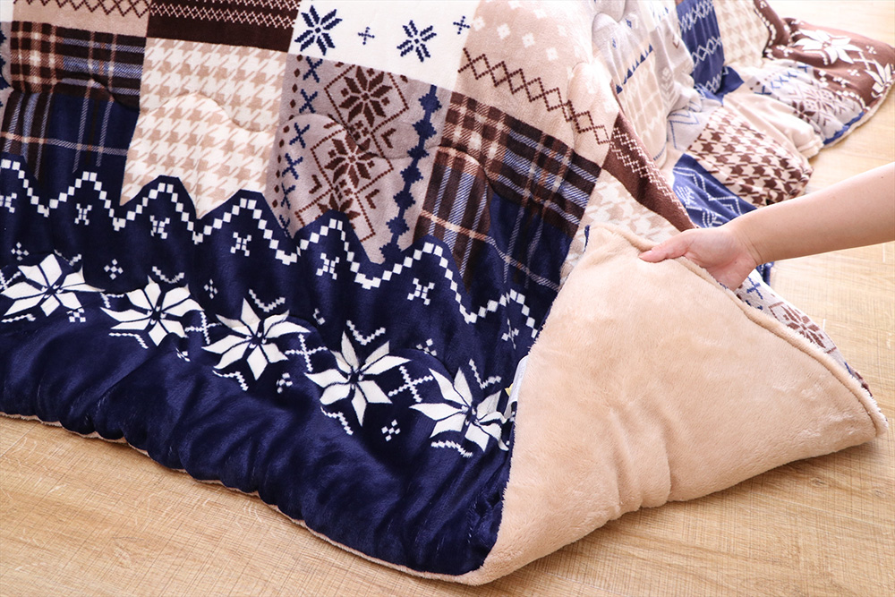 温かみのあるノルディック柄のこたつ布団です。表地には撥水加工を施しお水などをこぼしても浸透しにくくしているためペットや小さなお子様がいらっしゃるご家庭にはおすすめです。また裏地には吸湿発熱機能をつけることで、よりあたたかさを感じていただける商品にしました。
