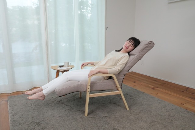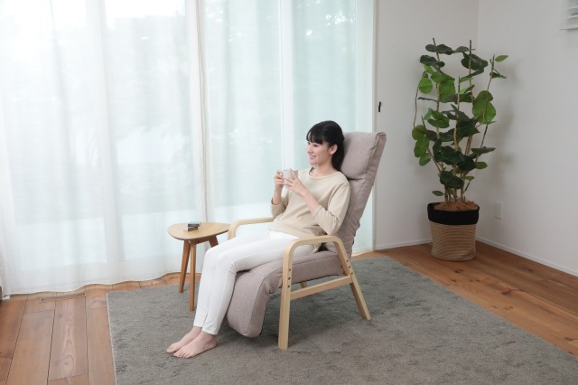 脚を伸ばしてゆったりと座ることができるリクライニングチェア