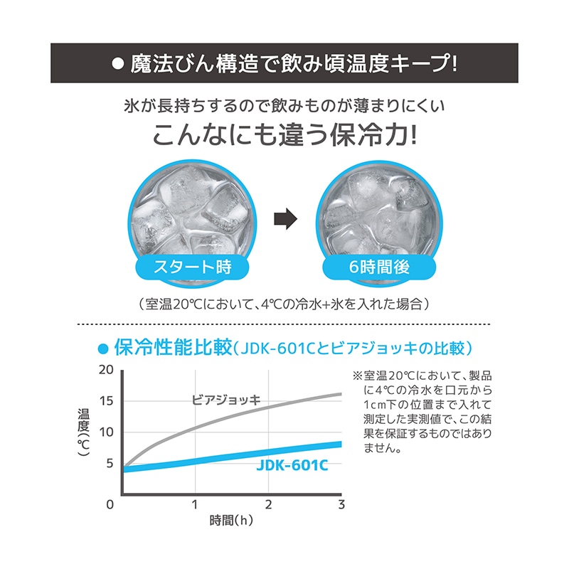おいしさ長持ち!ステンレス製魔法びん構造のジョッキ!