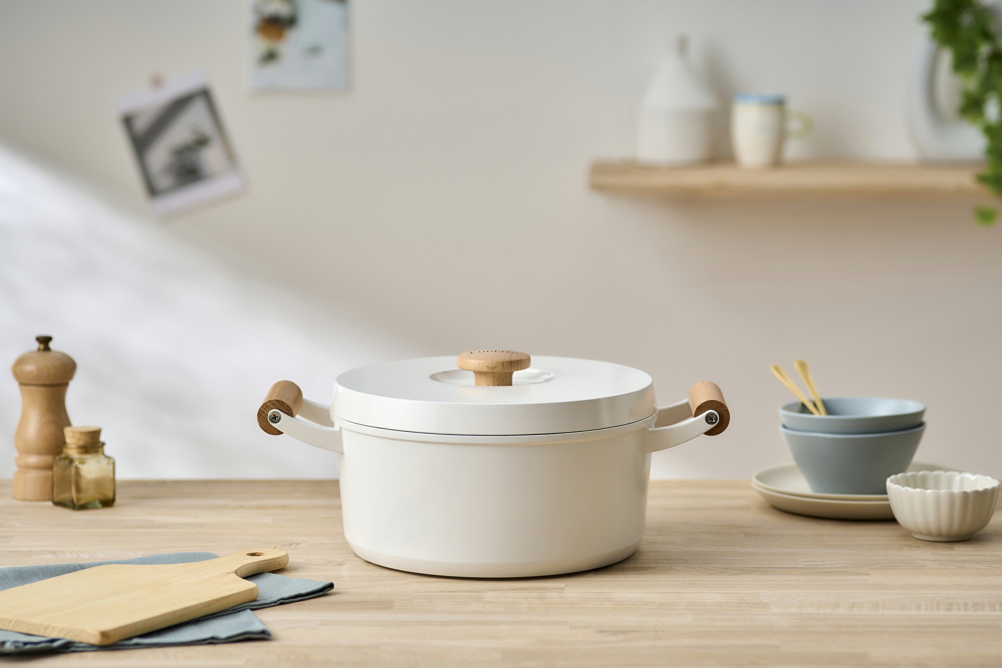 天然木の取っ手やつまみを取り入れ、デザイン性をアップさせました。