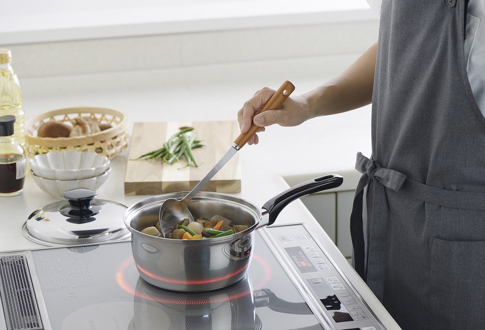 クリーン性・効率性・安全性に優れている点で3層鋼の加熱調理器は評価が高く、年々その認知度は高まっています。IH調理器具をより安全に効率よく18-10ステンレス3層鋼材を使用。耐久性と熱効率を実現しました。