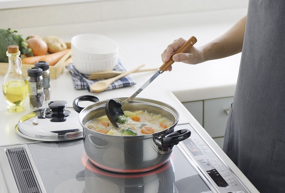 クリーン性・効率性・安全性に優れている点で3層鋼の加熱調理器は評価が高く、年々その認知度は高まっています。IH調理器具をより安全に効率よく18-10ステンレス3層鋼材を使用。耐久性と熱効率を実現しました。