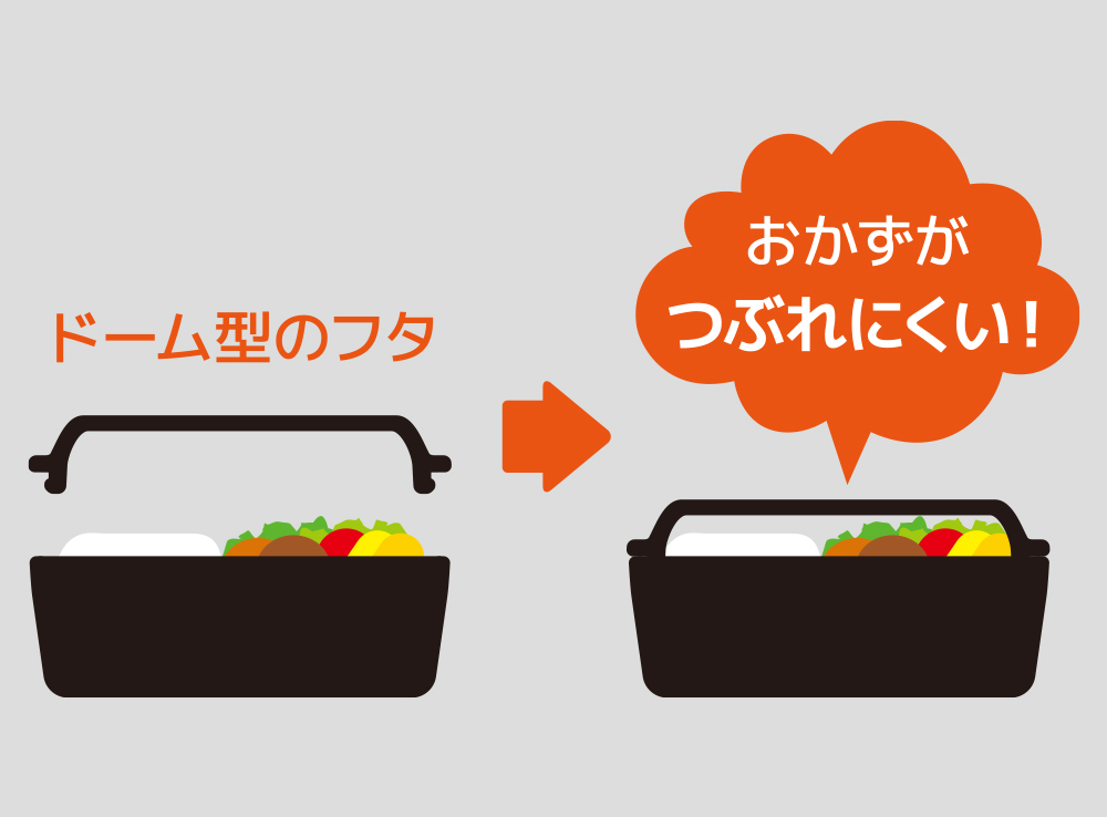 ドーム型のフタだからふんわり盛り付けできる!おかずがつぶれにくい! フタは汁漏れしにくいパッキン付き しっかり閉まって安心のベルトと18cmのハシ付き 各フタを外せば電子レンジで温めOK!食洗機にも対応! 専用保冷ケースは外気を遮断して保冷効果を高める断熱構造! 保冷剤などが入れられる2箇所のメッシュポケット付き 保冷ケースに入れることで保冷効果が高まり、お弁当をいたみからしっかりガード! |