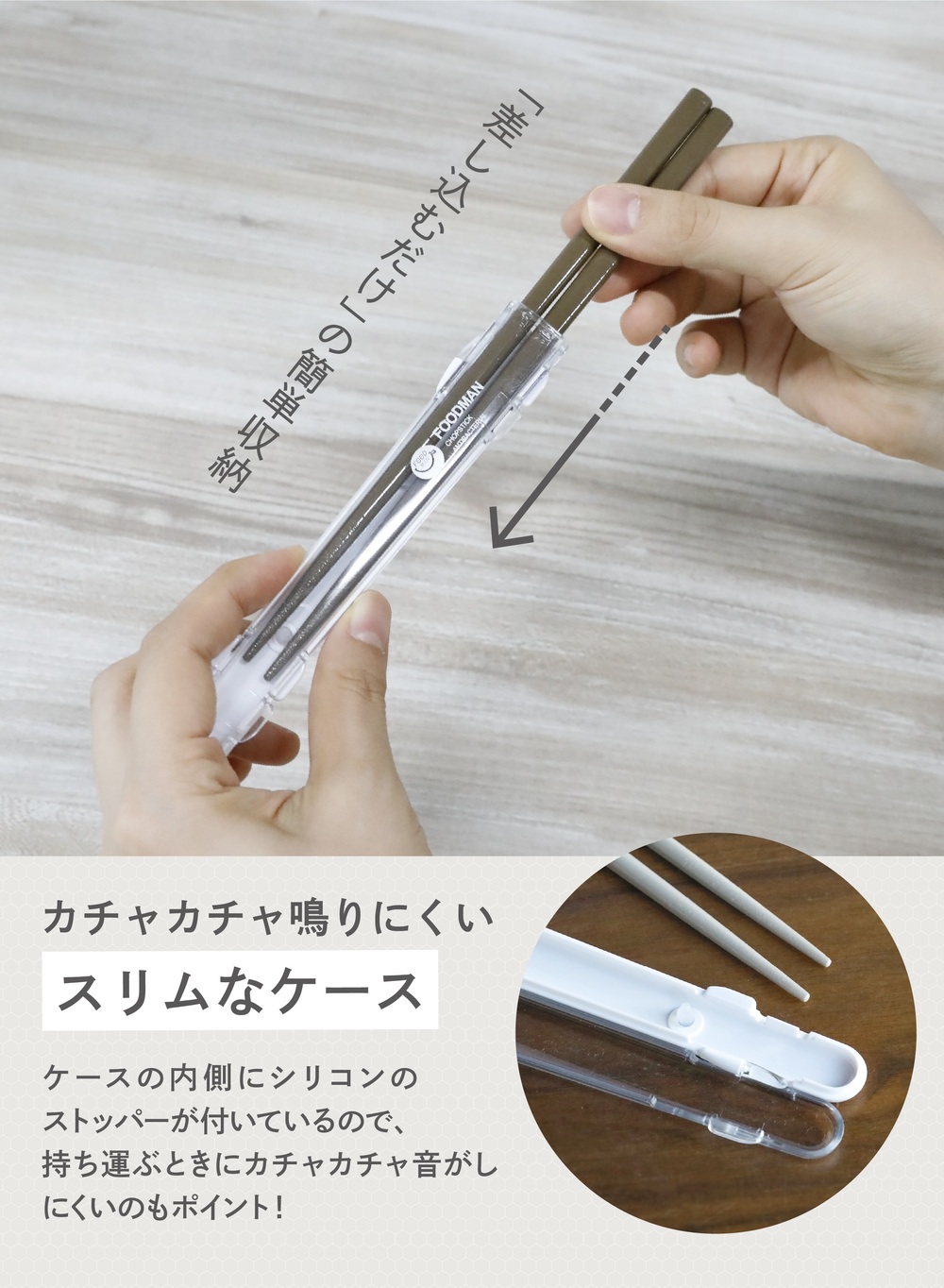 カチャカチャ鳴りにくいスリムな箸ケース
