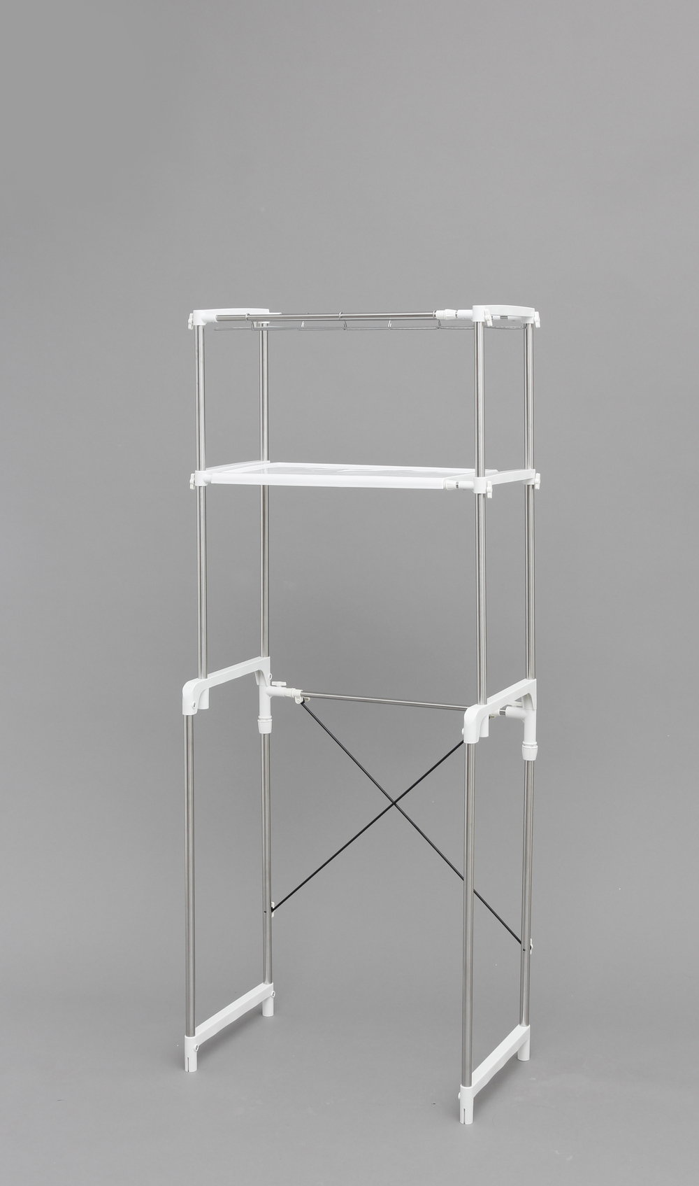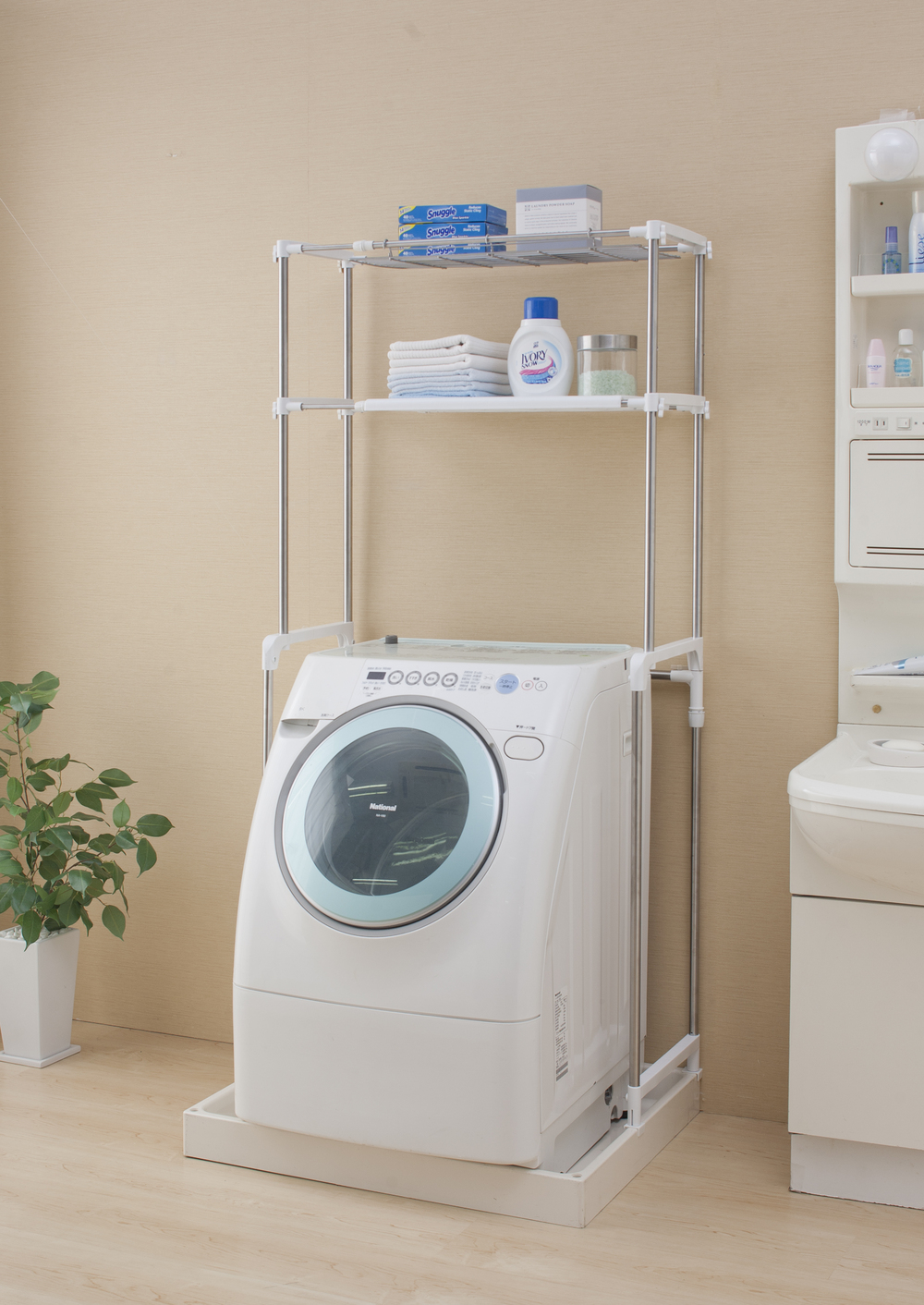 収納に困りがちな洗濯機周りを有効に活用できるランドリーラックです。メッシュ棚とフラット棚2枚付きです。組み立てが簡単で、洗濯パンの上に取り付けが可能です。サビに強いステンレス製です。false