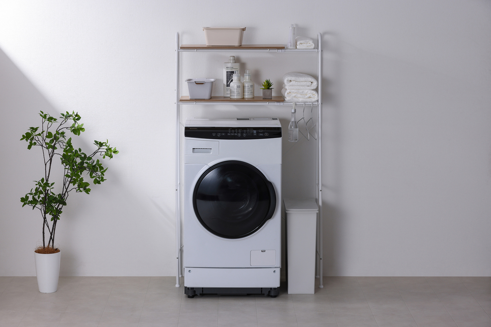 無駄なスペースがうまれがちな洗濯機周りをフル活用。