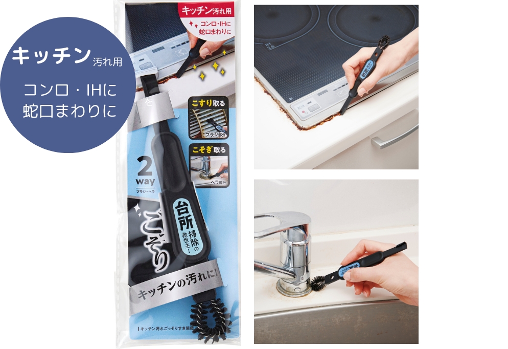 こすり取るブラシ部分・こそぎ取るヘラ部分の2way。