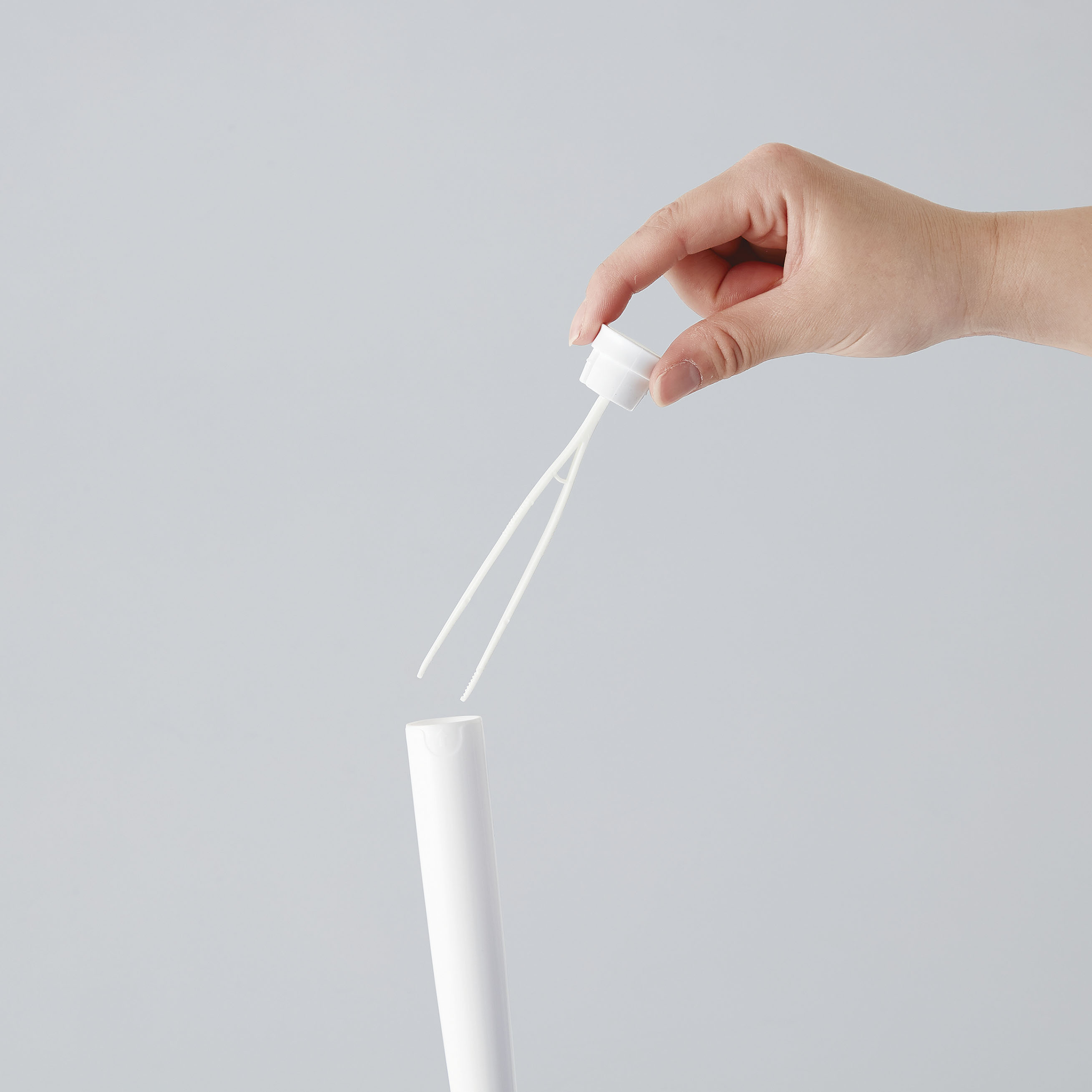 柄の部分には、便利なゴミ捨て用ピンセット付。