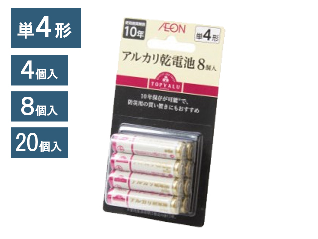 トップバリュ アルカリ乾電池 単4形 8個入 商品番号homecoordy8564902121042678