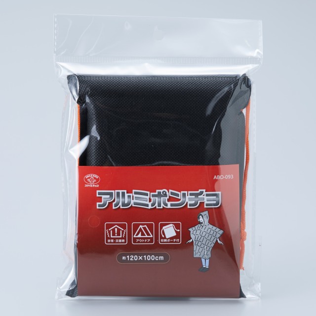 いざという時に羽織って体温低下を防ぐことができるアルミ製のポンチョです。