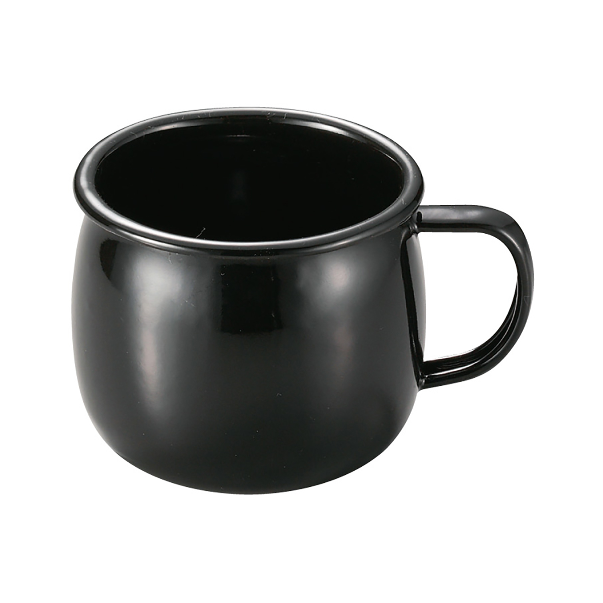 丸いフォルムが特徴のホーローマグカップ。飽きのこないシンプルなデザインです。