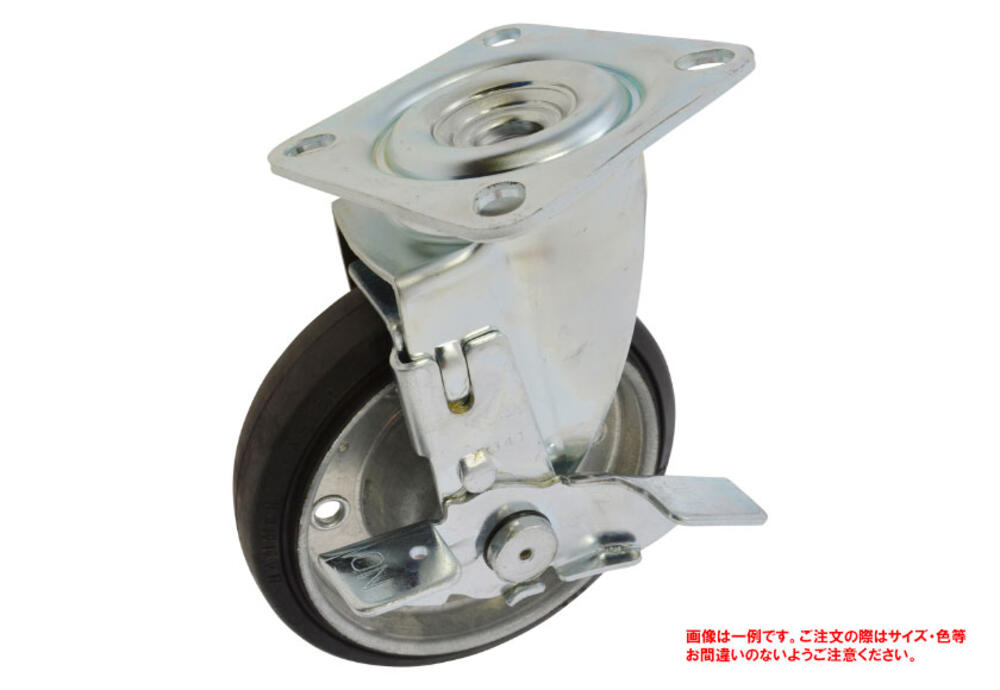 回転が良く、耐荷重性に優れています。ゴム車輪なので弾性に優れています。車輪のゴムの厚みを薄くし、取付金具の構成を一部変更したことで、始動力(動き出し)と旋回始動力(旋回時の動き出し)が従来品に比べてやや軽くなりました。自在タイプ、ストッパー付き。