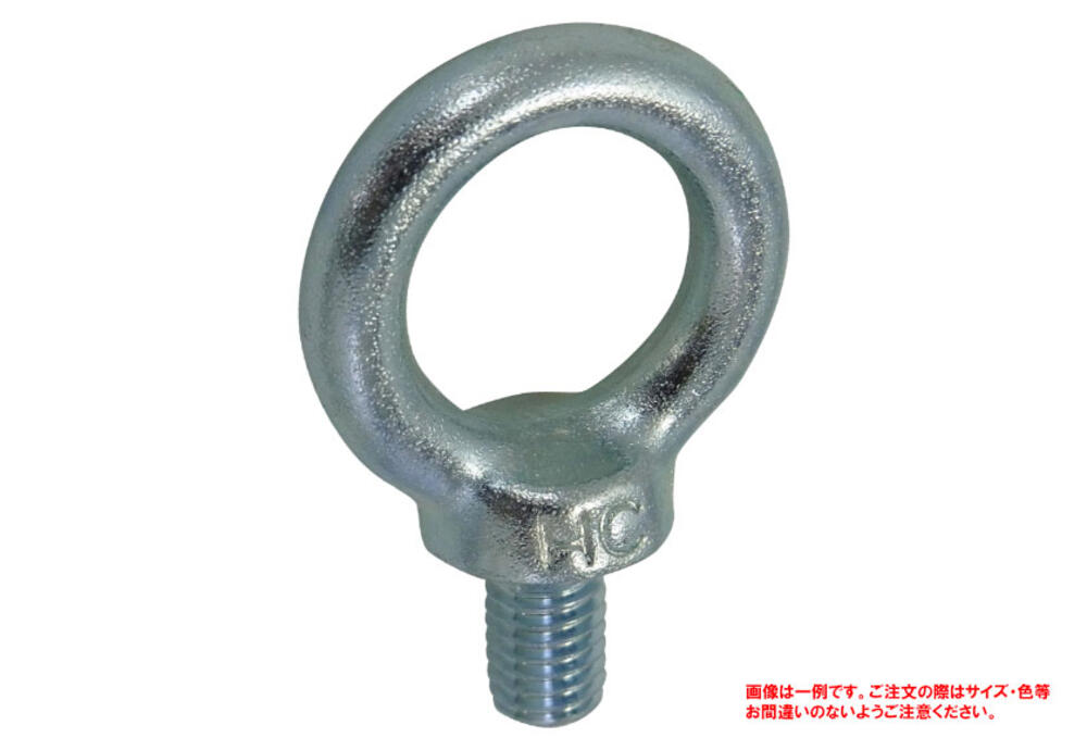 吊り下げ用のリングを持ったボルトです。重量物の吊り上げに用います。材質は鋼で耐食性向上のため、ユニクロめっき(薄青っぽい色合い)がしてあります。規格はJIS B 1168をご覧ください。