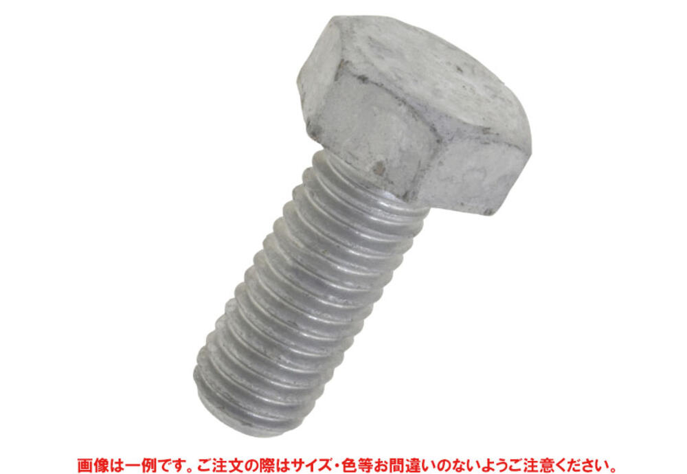 六角形状の頭部があり、胴の全体にねじが切ってあります。材質は鋼で耐食性向上のため、溶融亜鉛めっき(白っぽい色合い)がしてあります。規格はJIS B 1180附属書JAをご覧ください。